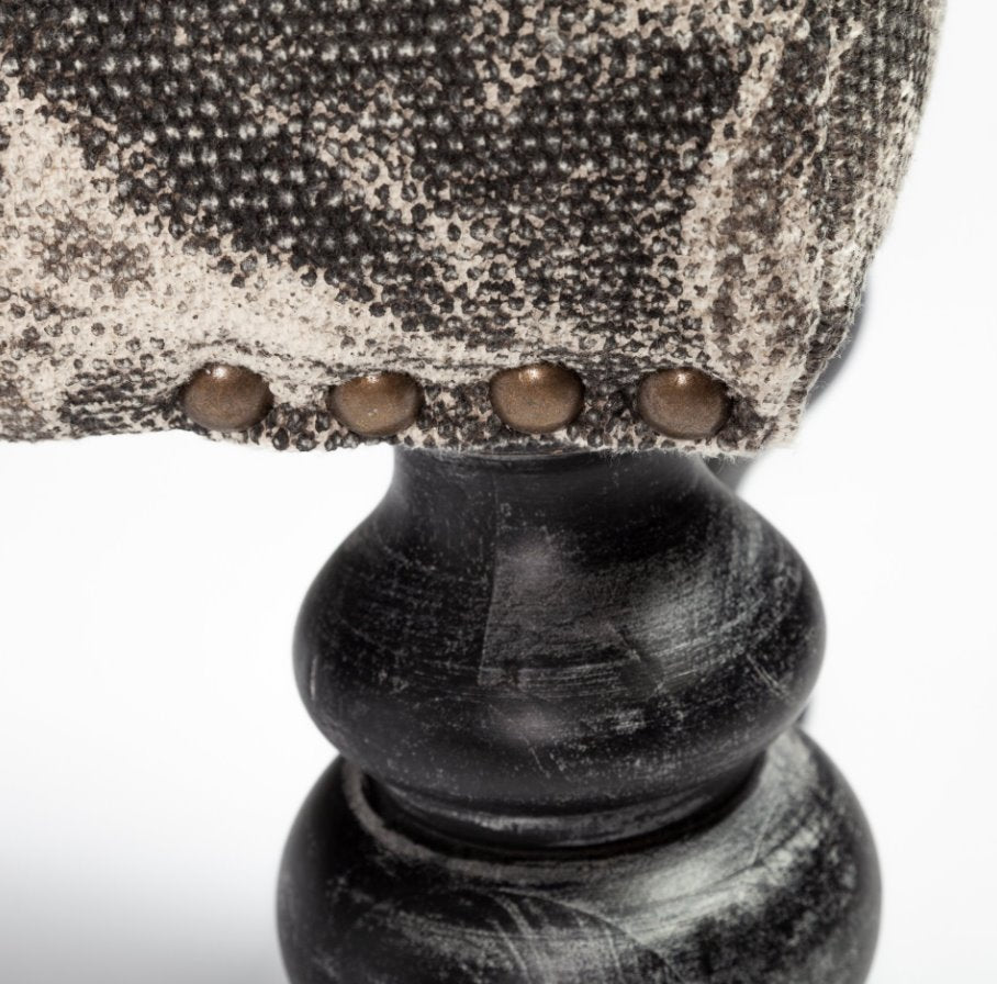Confectionné avec un souci du détail exceptionnel, ce banc en bois présente des pieds tournés et une assise rembourrée en tissu tressé. Le tissu arbore un motif élégant qui met en valeur le banc et s'harmonise parfaitement avec les riches nuances du bois.