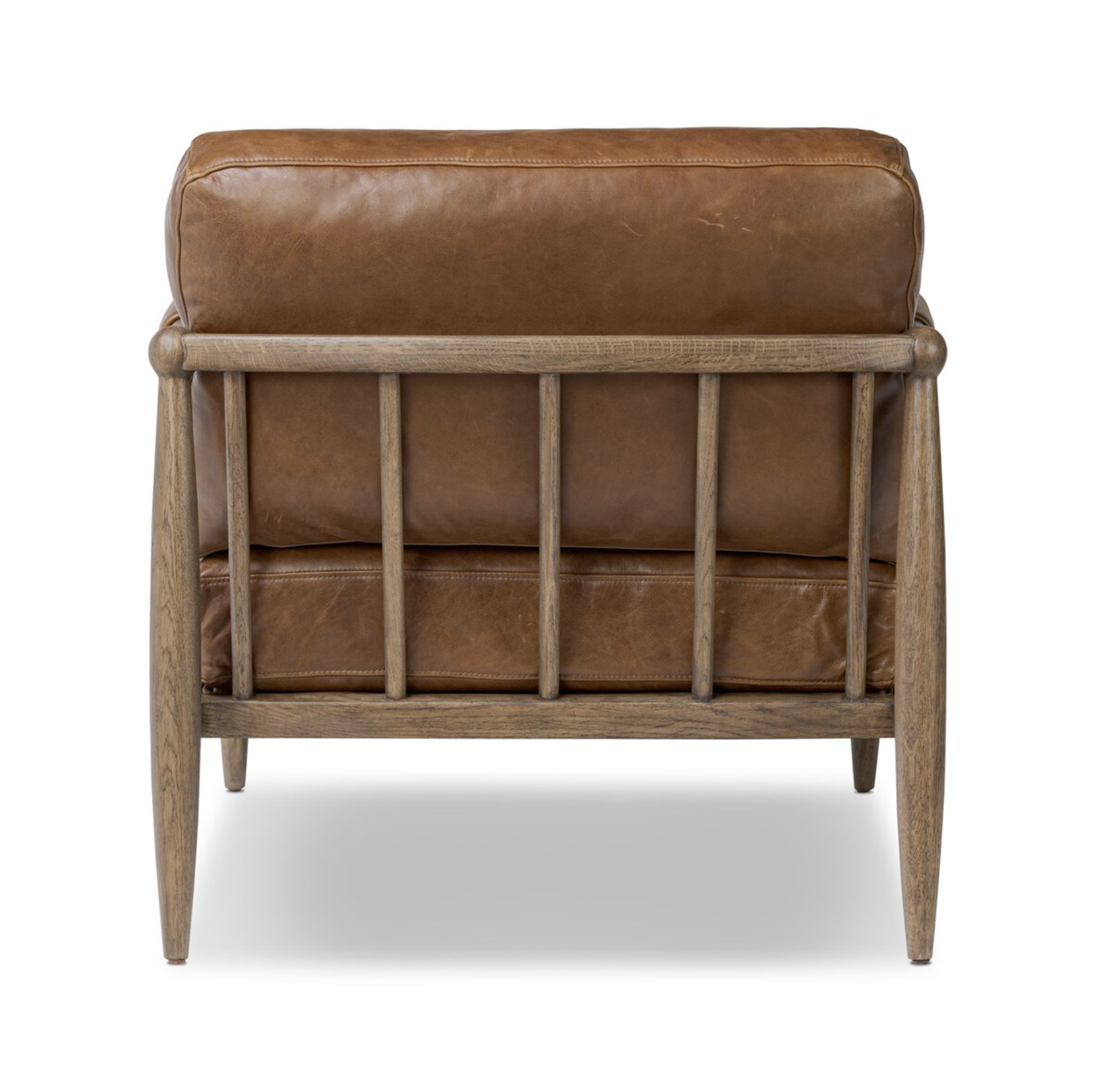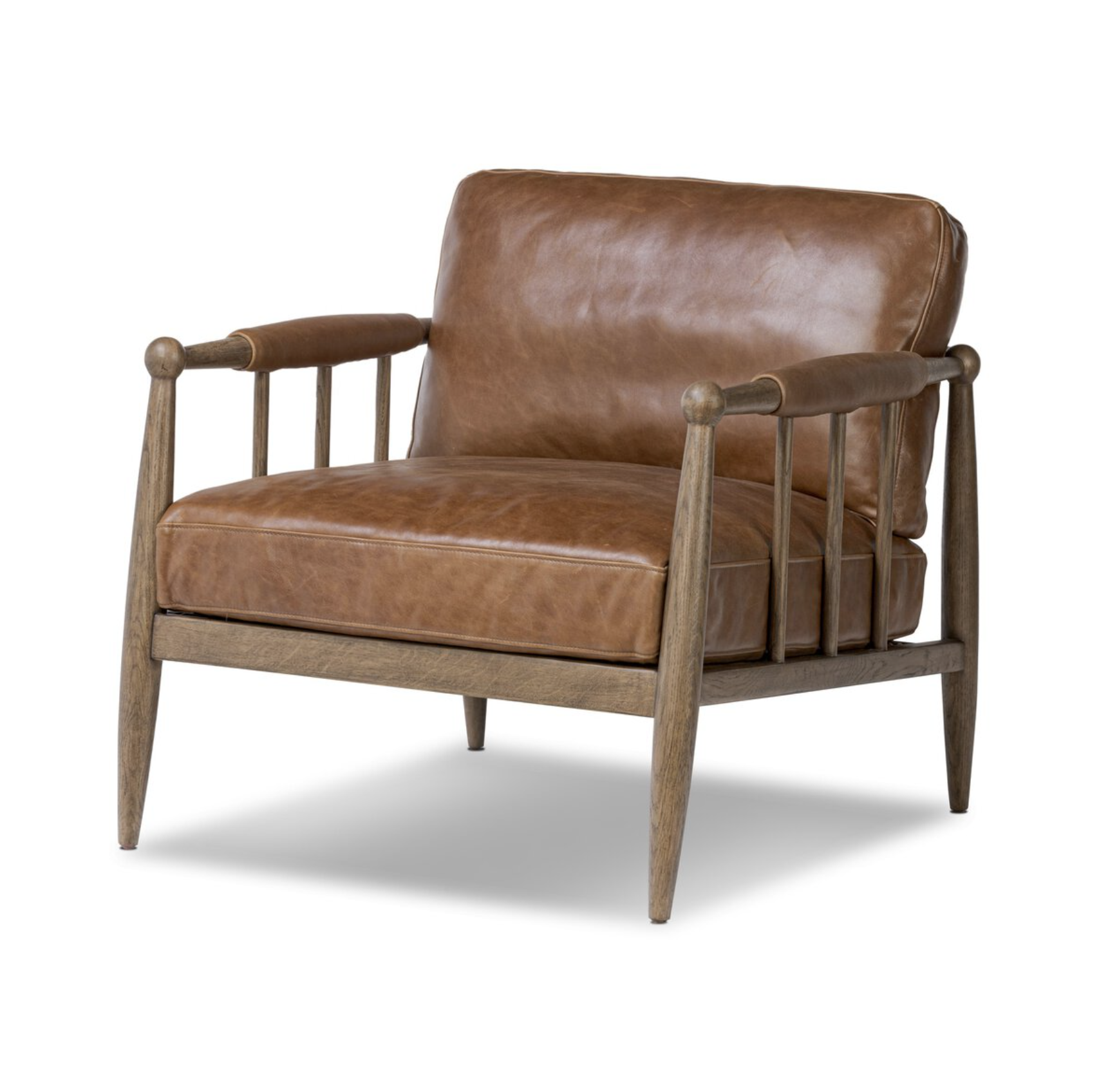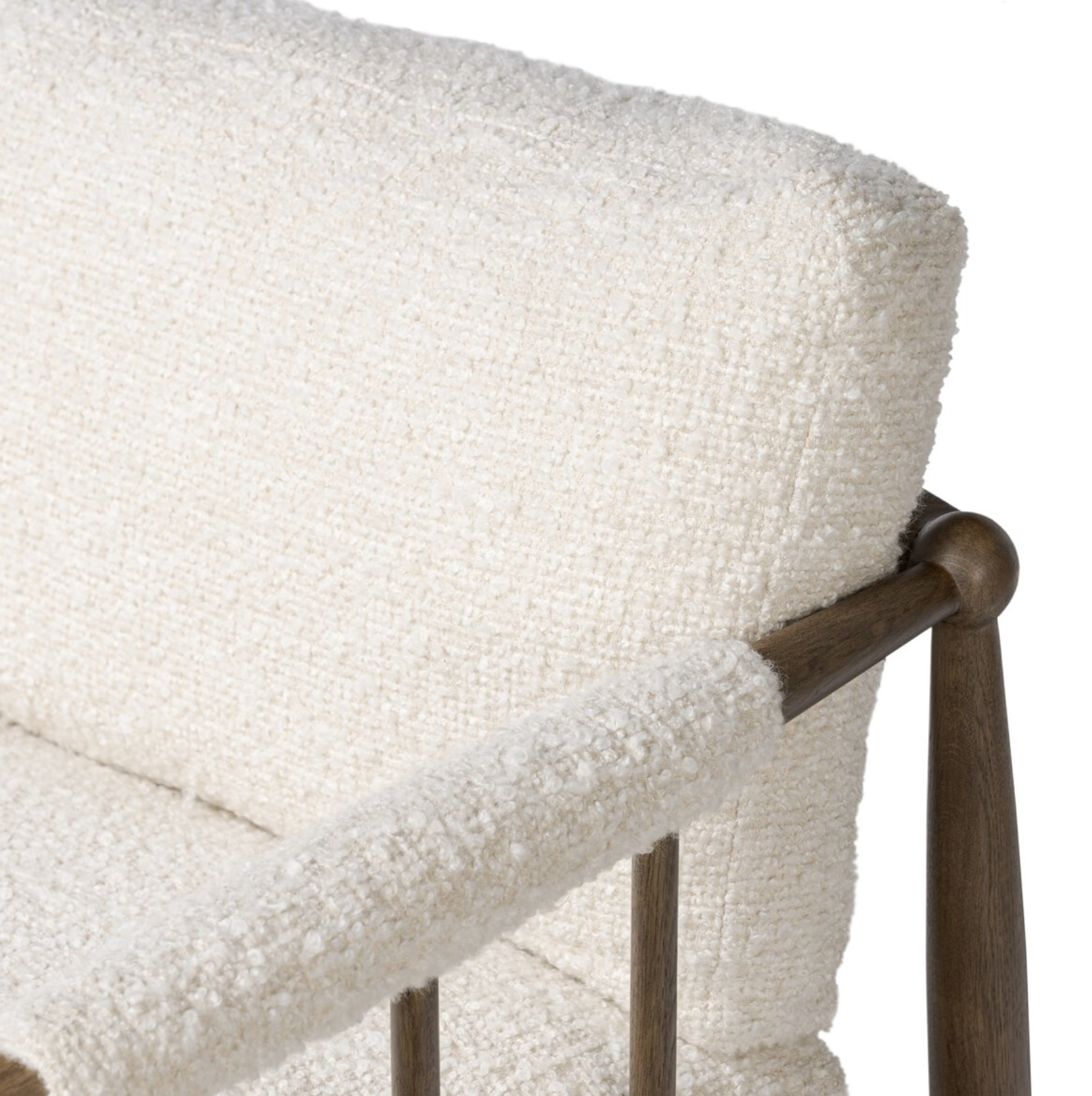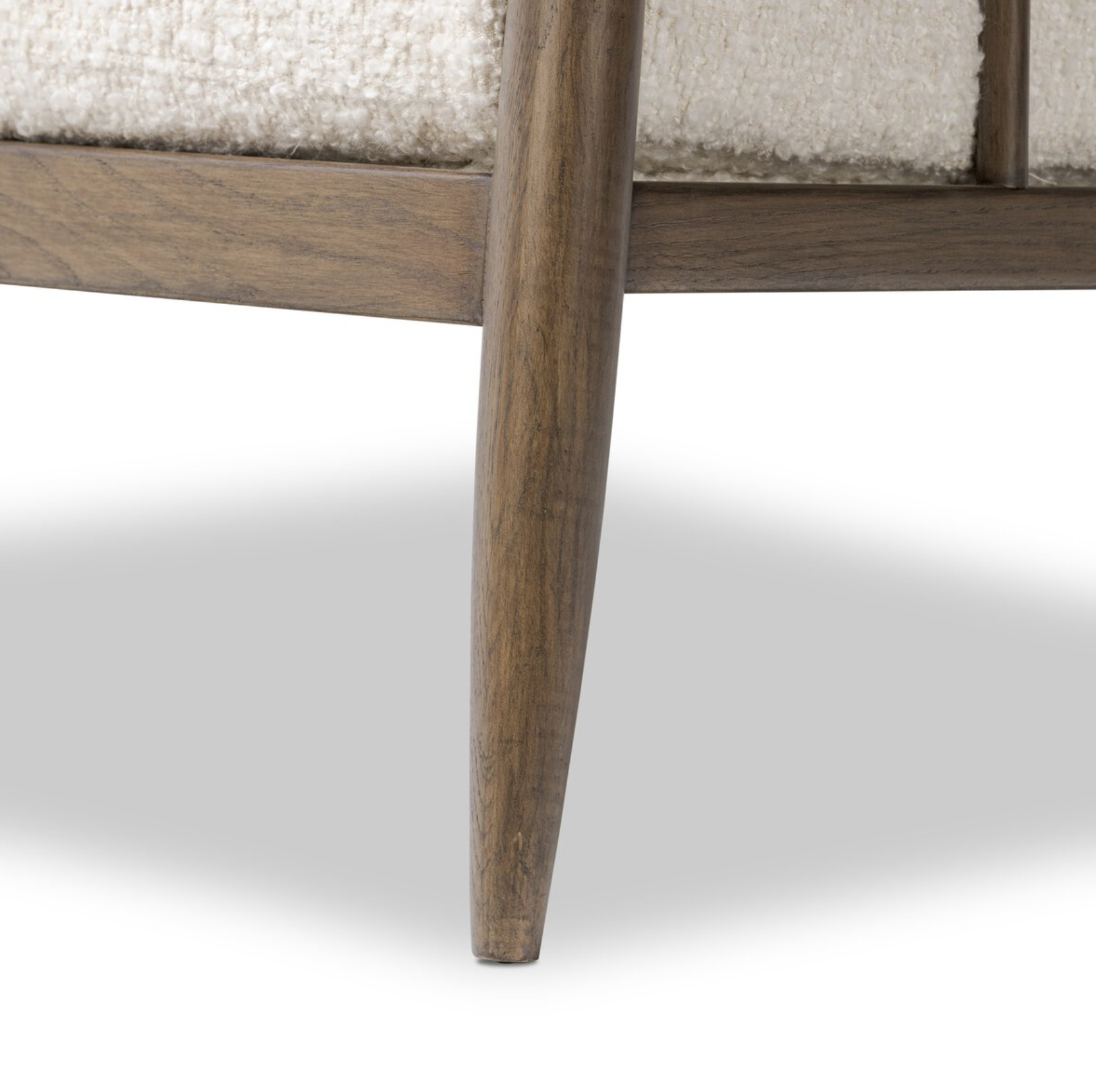 Fruit d'une collaboration entre Amber Lewis et Four Hands, le fauteuil Warren est disponible en tissu bouclé à poils longs ou en cuir pleine fleur. Ce fauteuil d'appoint arbore une silhouette classique revisitée avec une touche contemporaine : structure en chêne vieilli, pieds fuselés, barreaux le long des accoudoirs et détails ornementaux.