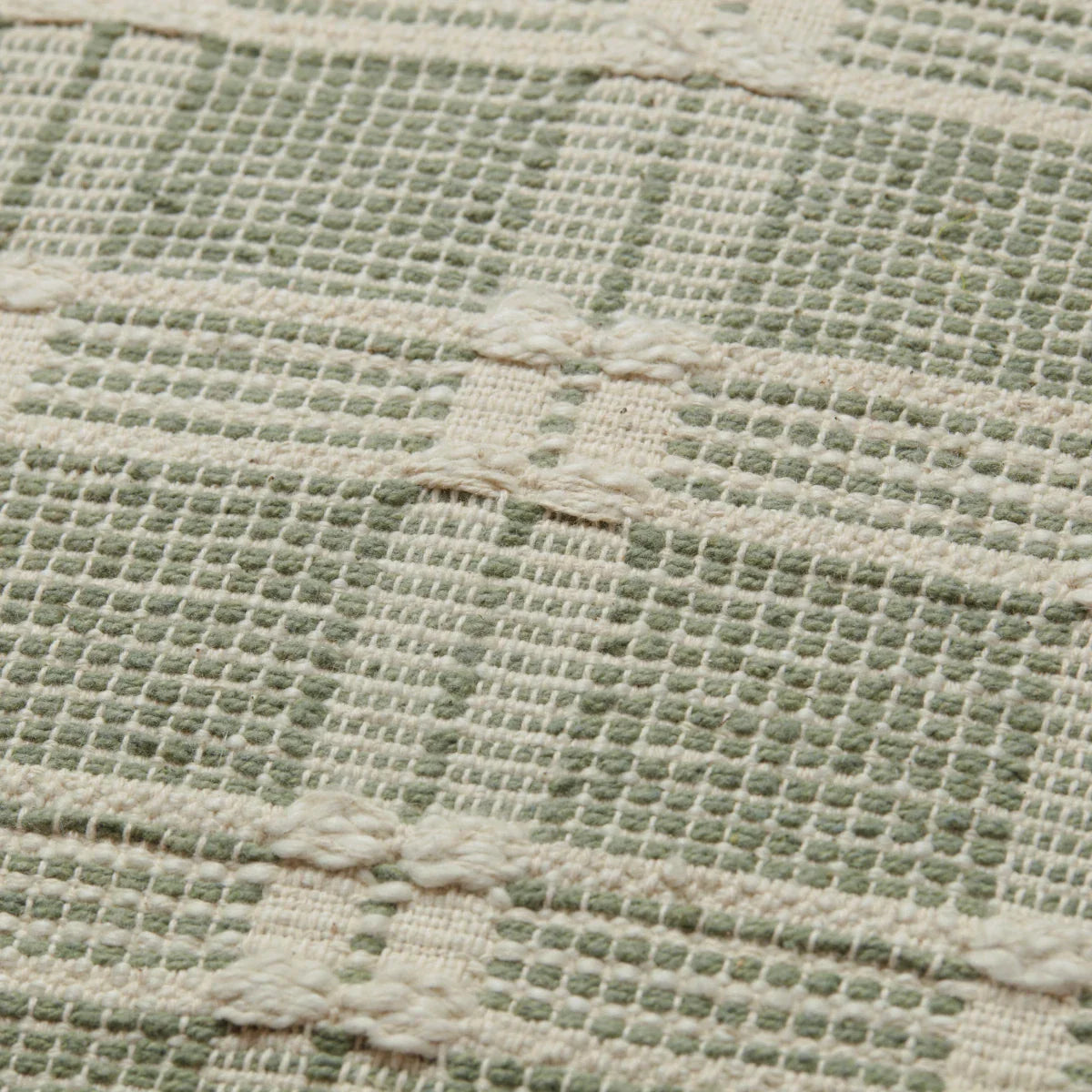 Tissé à la main par des artisans qualifiés, le coussin Madera est confectionné en pur coton et garni d'un luxueux duvet. Ses teintes vert sauge et crème s'intègrent parfaitement à une décoration tendance.