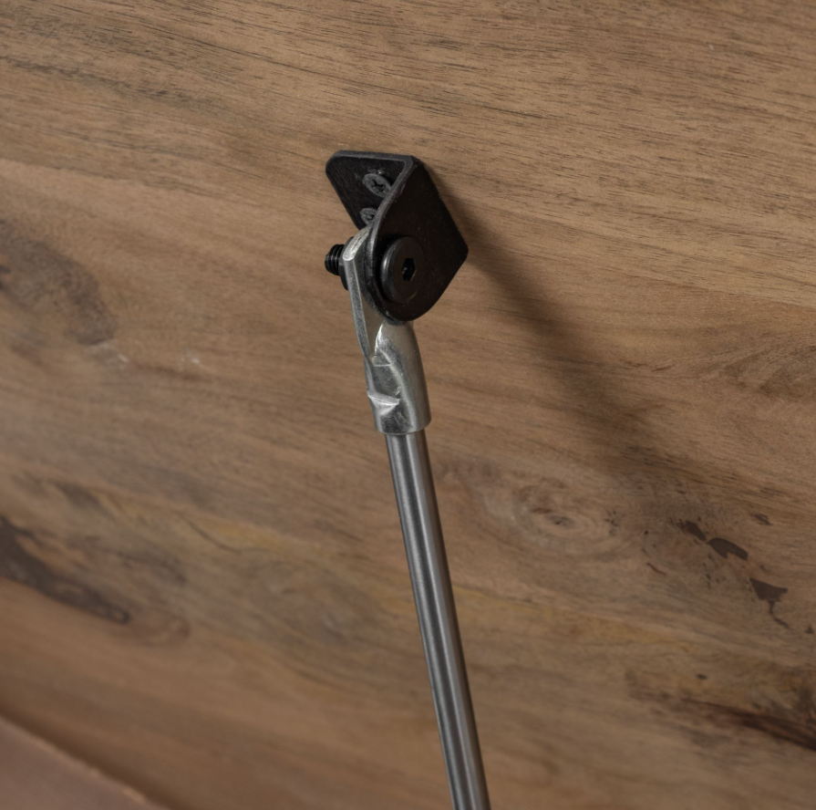 La table basse Arreto se distingue par sa forme hexagonale unique et sa finition teintée brun moyen. Son piètement profilé lui confère une allure géométrique originale. Son plateau rabattable offre un espace de rangement pratique pour les couvertures, les livres et autres objets, alliant esthétique et fonctionnalité.