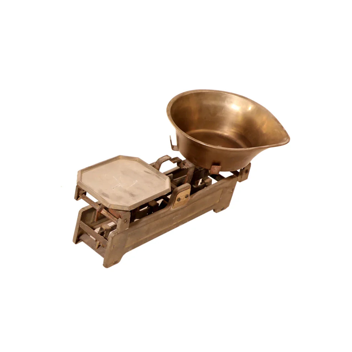Coulée en bronze, cette balance artisanale apporte une touche d'originalité à toute décoration. Intégrez-la dans une composition de cuisine ou utilisez-la pour donner du relief à une bibliothèque.