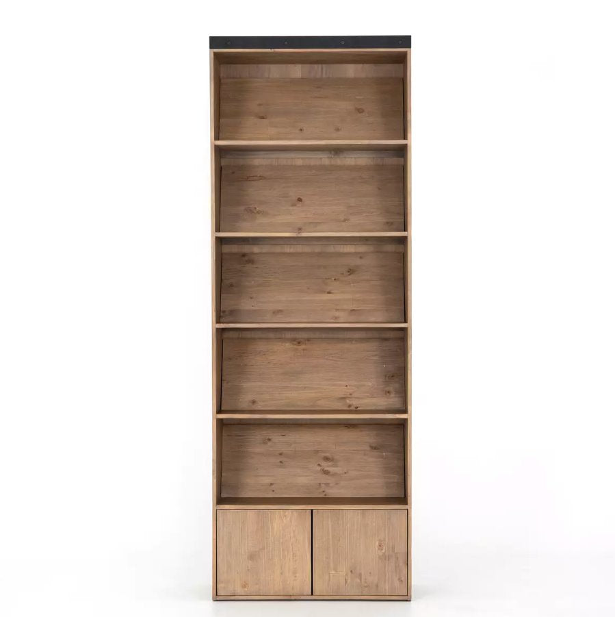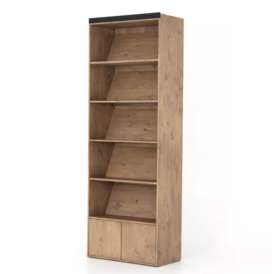 Fabriquée en pin massif fumé, cette bibliothèque offre cinq étagères spacieuses, idéales pour ranger vos livres et objets précieux. Des tablettes inclinées amovibles sont placées en biais sur chaque étagère, permettant ainsi de mettre en valeur vos œuvres d'art et vos beaux livres.