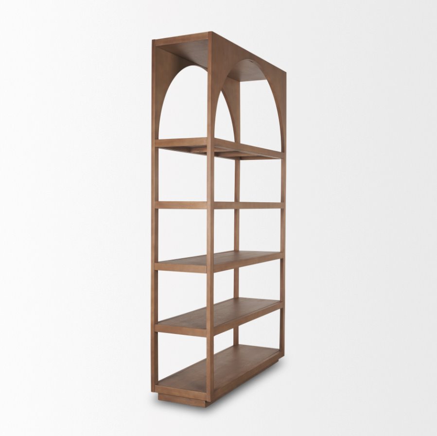 L'étagère arquée Bela allie à la perfection fonctionnalité et design artistique. Fabriquée en bois de manguier robuste, sa finition brun moyen chaleureux apporte une touche chaleureuse à toute pièce. Dotée de cinq étagères spacieuses et ouvertes, elle offre un espace de rangement idéal pour vos objets décoratifs préférés ou vos livres préférés.