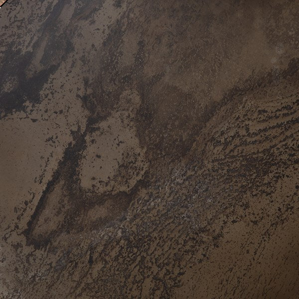 Une pièce maîtresse d'inspiration organique. Un plateau rond en fer vieilli ou en chêne rustique repose sur un piètement sculptural en chêne rustique et chaleureux, aux magnifiques reliefs. Disponible en deux finitions.