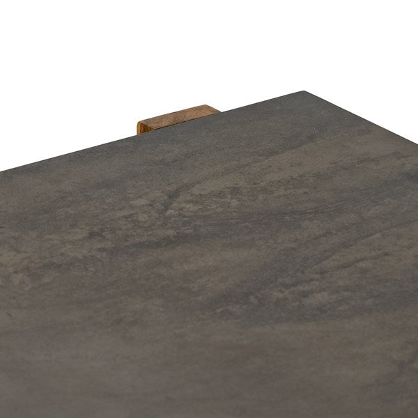 Pièce maîtresse au style organique, le meuble TV Bingham se compose d'un caisson en fer vieilli artisanal, intégré dans une structure en chêne aux lignes harmonieuses. Des étagères ouvertes au centre sont flanquées de placards de chaque côté, offrant un espace généreux pour les accessoires TV et le rangement multimédia.