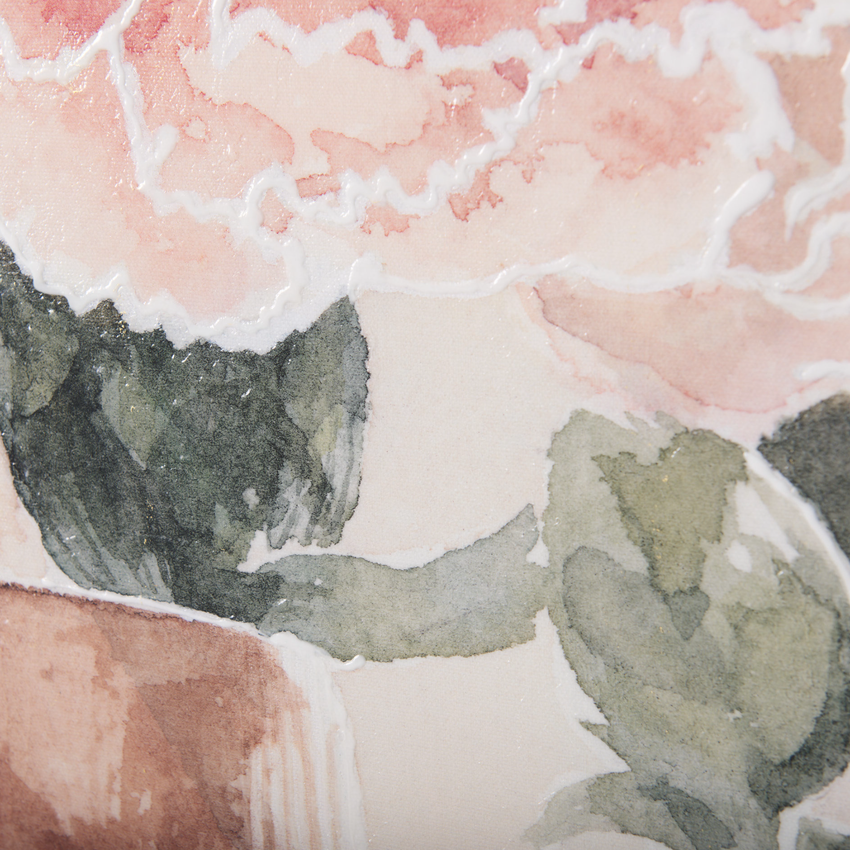 Inspirée des techniques de l'aquarelle, l'œuvre d'art sur toile Boho Flowers présente des tons apaisants de gris, beige, rose et brun, créant une ambiance tranquille et captivante.