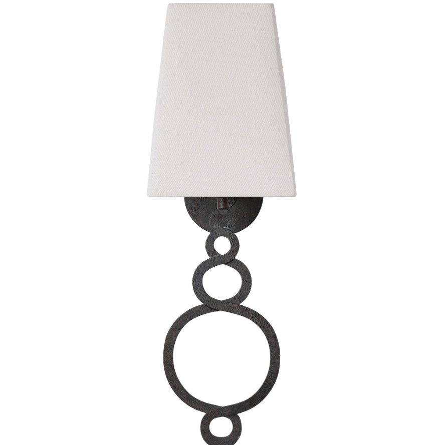 Les courbes douces et classiques de cette applique murale de 1 litre, au fini bronze patiné profond et à l'abat-jour rigide en lin beige, lui confèrent une élégance raffinée. Équipée d'une ampoule de 60 watts maximum (douille de type candélabre).
