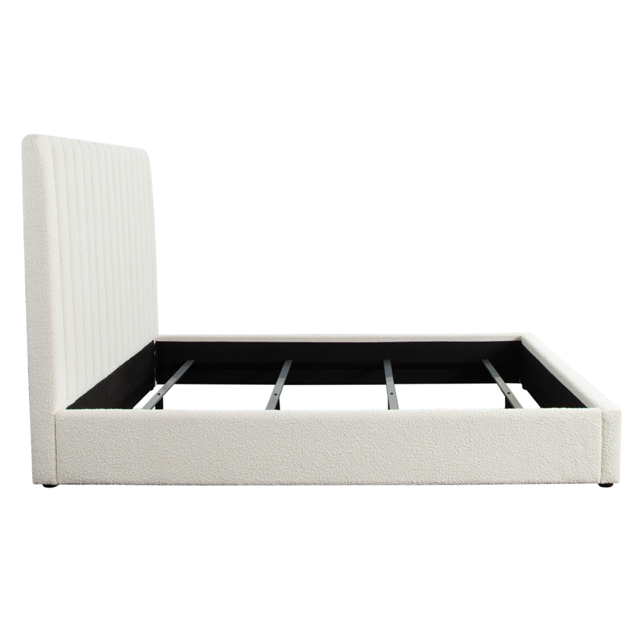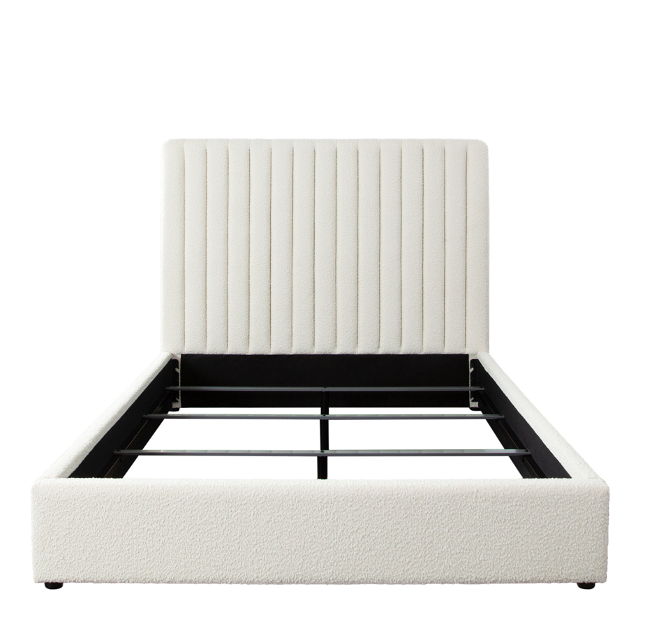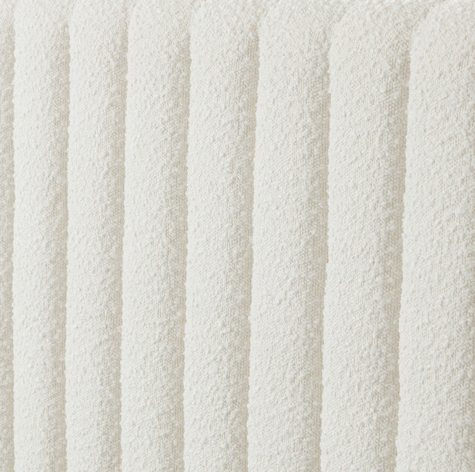Le lit Brooke est revêtu d'un tissu bouclé neutre avec un capitonnage vertical, offrant un cadre de lit raffiné, élégant et accueillant pour votre chambre.