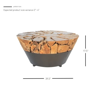 - Dimensions : 39,50 po l x 39,50 po p x 17,50 po h (chaque table étant unique, les dimensions peuvent varier légèrement)