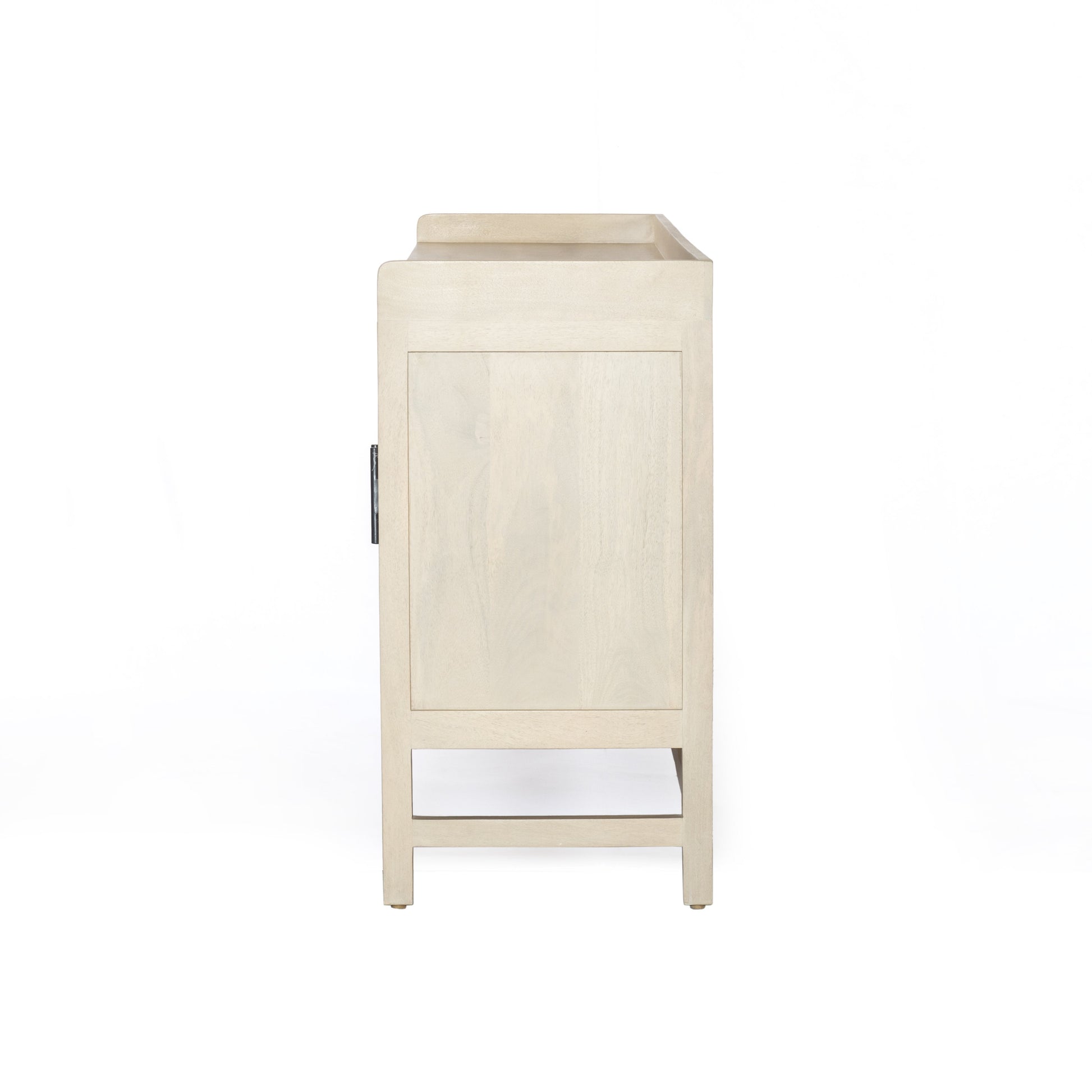 Un style monochrome rehaussé d'une touche de texture. Des cadres en bois de manguier naturel encadrent des façades en rotin tressé, rehaussées de ferrures en fer noir pour un contraste subtil. À l'intérieur, de spacieuses étagères offrent un espace de rangement idéal pour la vaisselle et autres ustensiles.