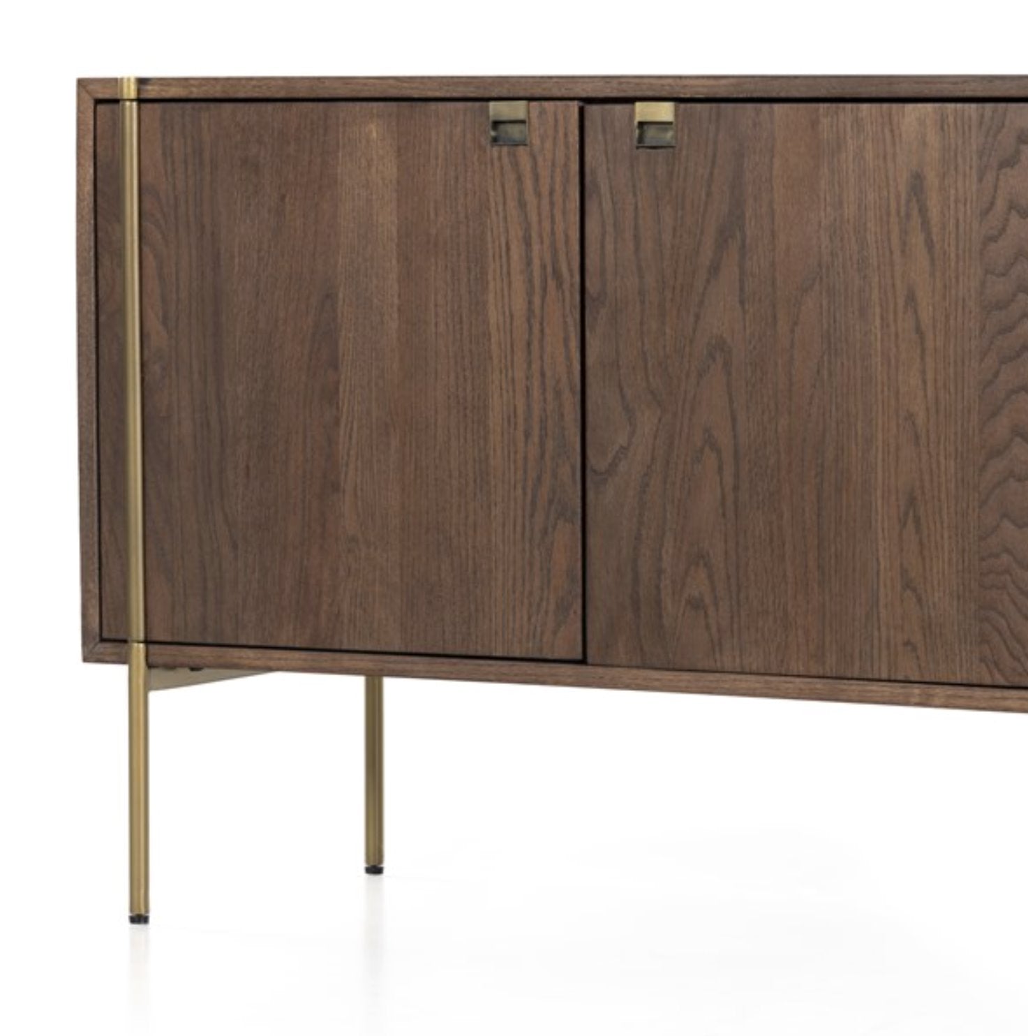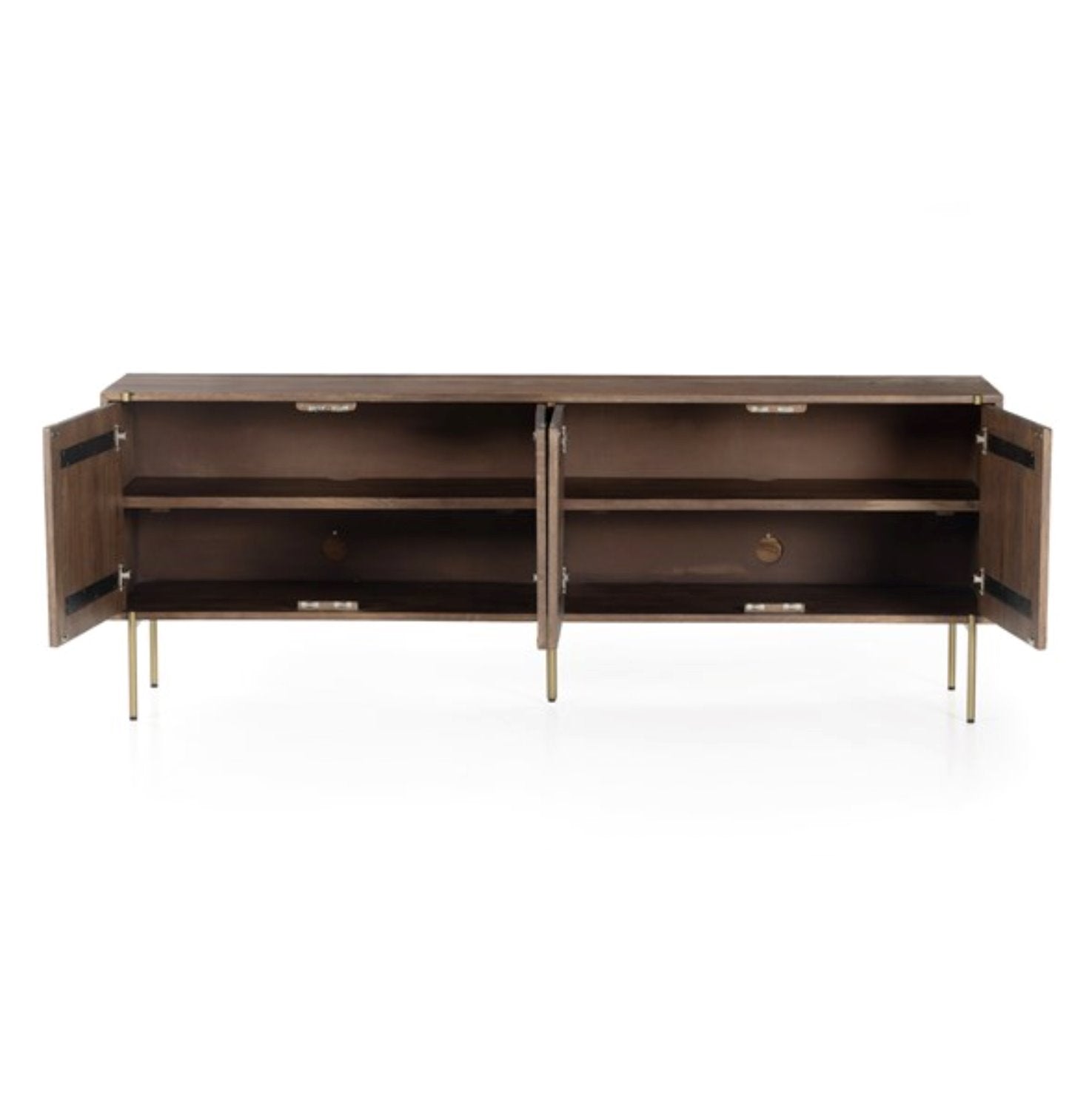 Ce design d'inspiration danoise est à la fois simple et élégant. Les poignées carrées et les incrustations en laiton apportent du contraste et une touche de luxe discret.
