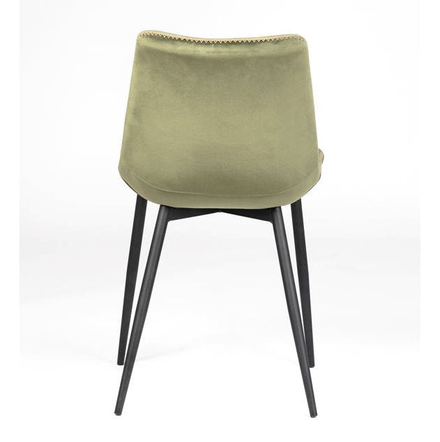 Dotée d'une base robuste en métal noir mat, la chaise de salle à manger Castelo comprend une assise et un dossier moulés recouverts d'un velours vert olive moelleux, ce qui en fait la chaise idéale pour votre espace repas.