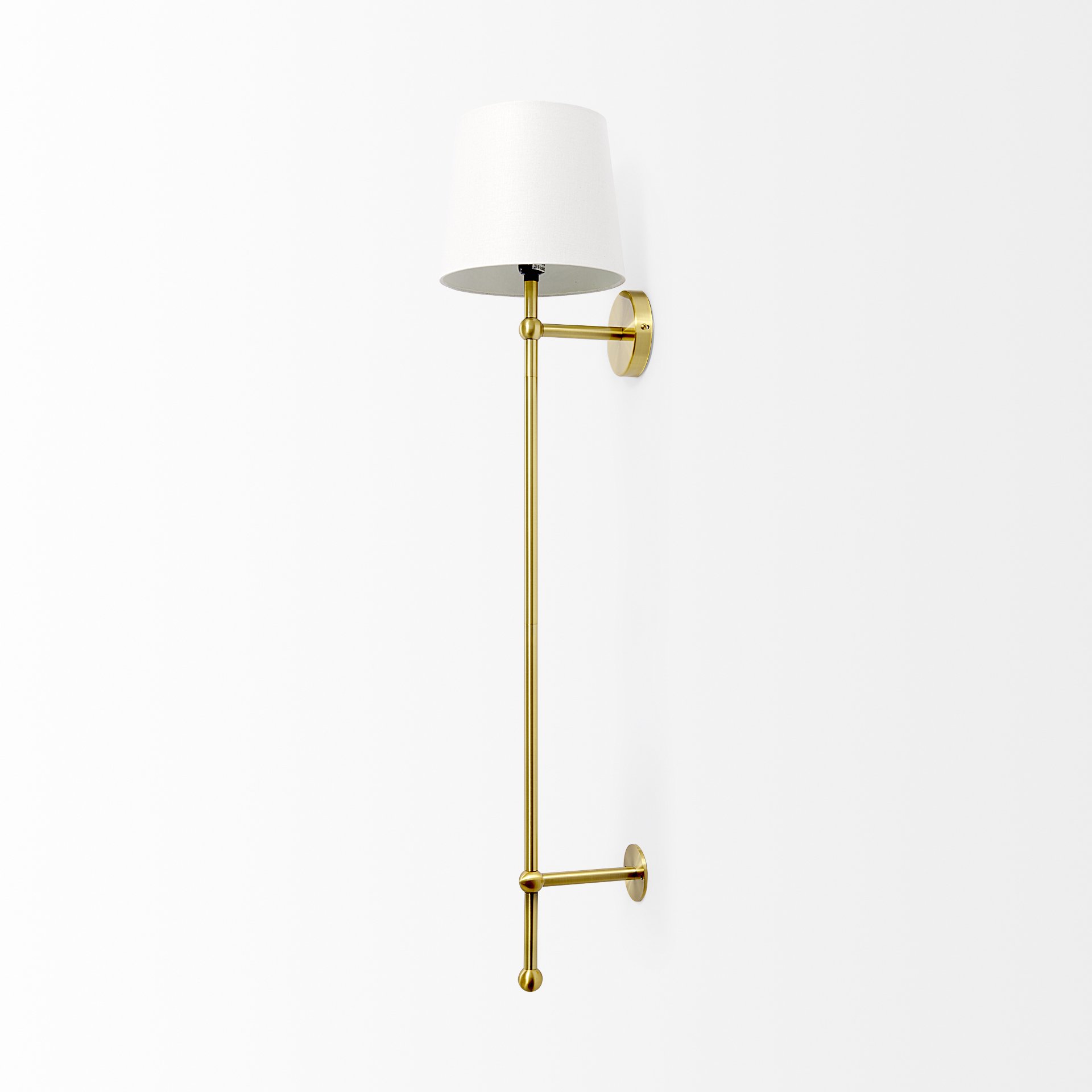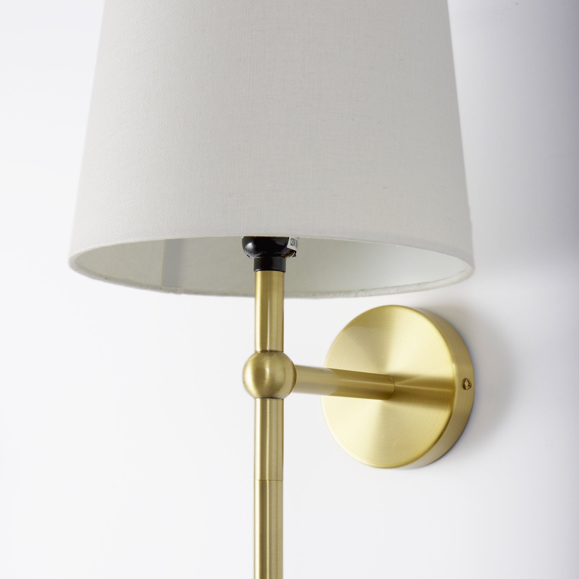 L'applique murale Chester est un modèle élégant doté d'un abat-jour conique en tissu, fixé à une fine poutre en métal doré vieilli, avec des supports muraux assortis. Elle utilise une ampoule standard E26 de 40 watts et son abat-jour crème diffuse une lumière chaude, idéale pour créer une ambiance chaleureuse. Nous recommandons cette applique raffinée pour les espaces inspirés par le style « Élégance intemporelle ».