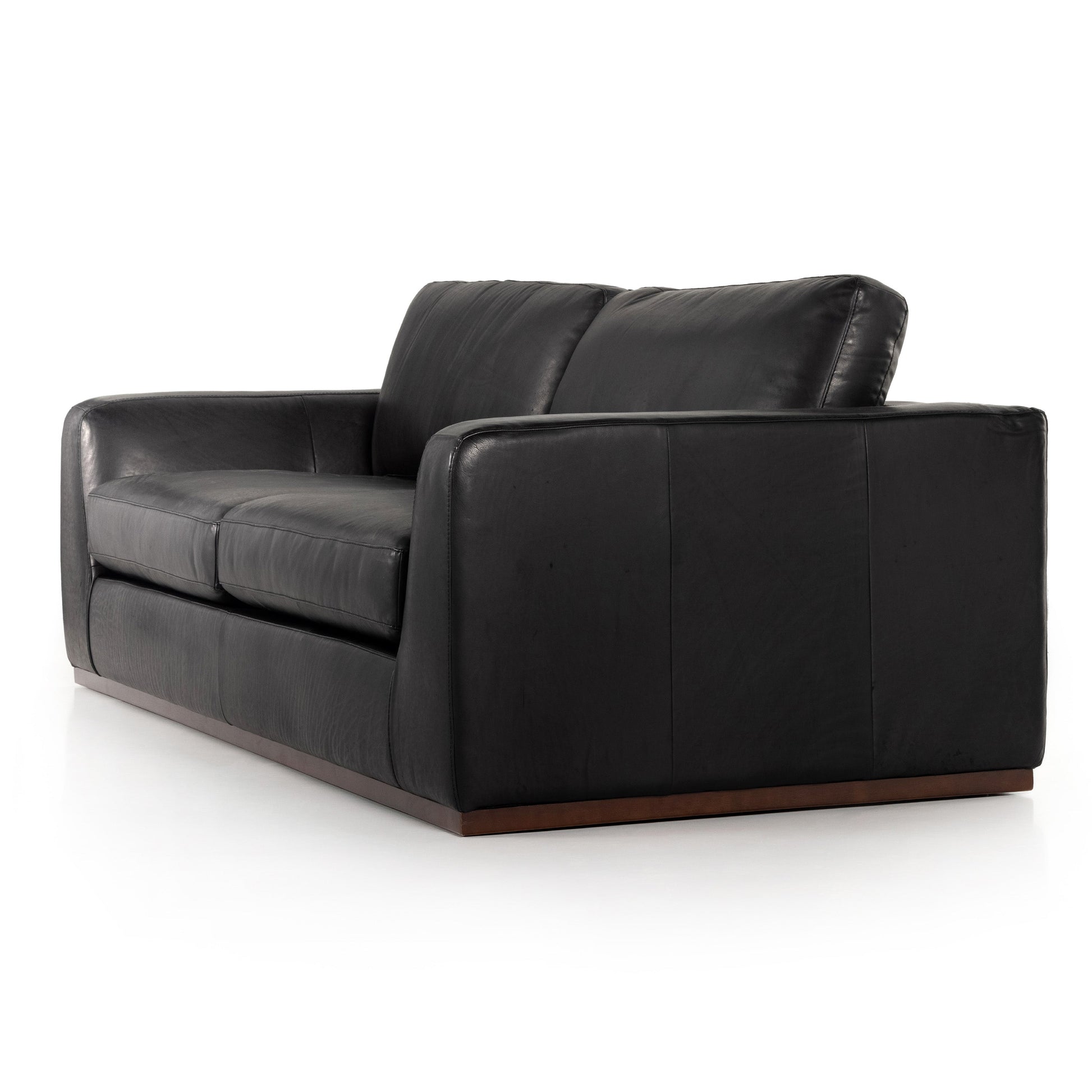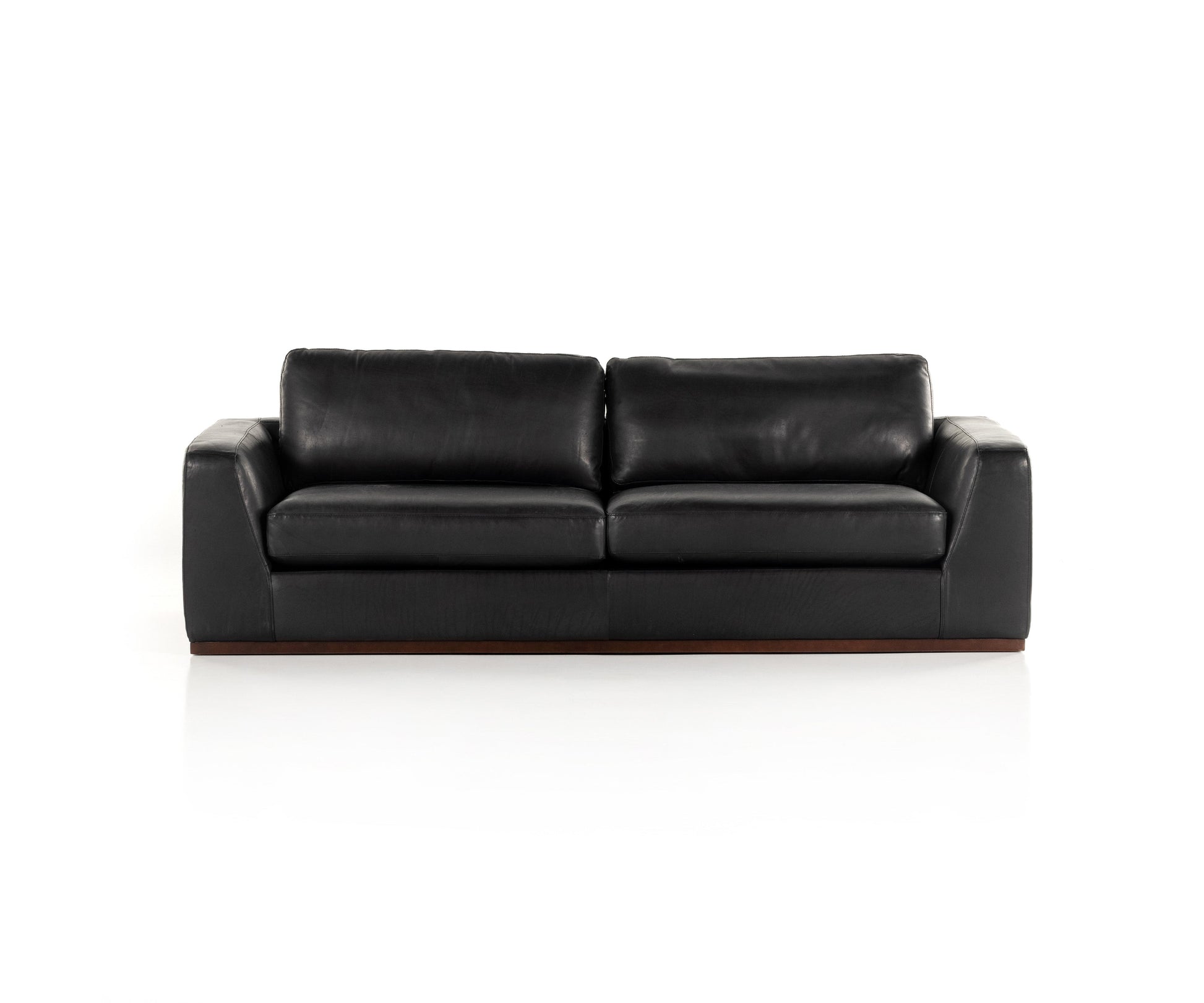 Une structure moelleuse s'allie à la texture naturelle d'un cuir d'exception, issu d'une des plus anciennes tanneries familiales d'Italie. Ce cuir noir, souple et profond, présente des cicatrices, des marques et des variations de couleur naturelles.