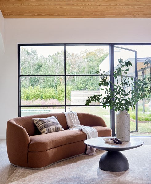 Associant un marbre luxueux et crémeux à un piètement sculptural en aluminium, la table basse Corbett trouve un équilibre parfait entre audace et sobriété. Fabriquée en aluminium finition gris foncé et en marbre massif.
