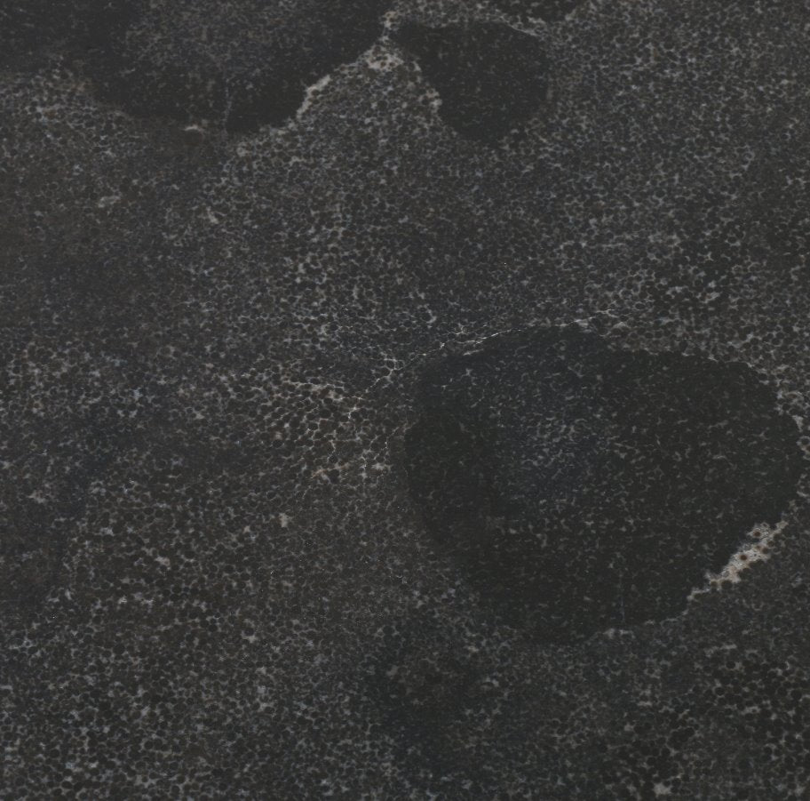 Un piètement tripode classique en fer noirci soutient un plateau arrondi en pierre bleue, ajoutant une touche d'élégance à un style fin et épuré.