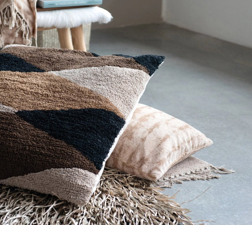 Ce coussin carré de 45 cm, d'inspiration bohème et teint avec un motif tie-dye délicat, apporte confort et style grâce à son aspect doux. Amusez-vous à mélanger différents motifs sur une base neutre de beige et de grès pour créer votre propre style !