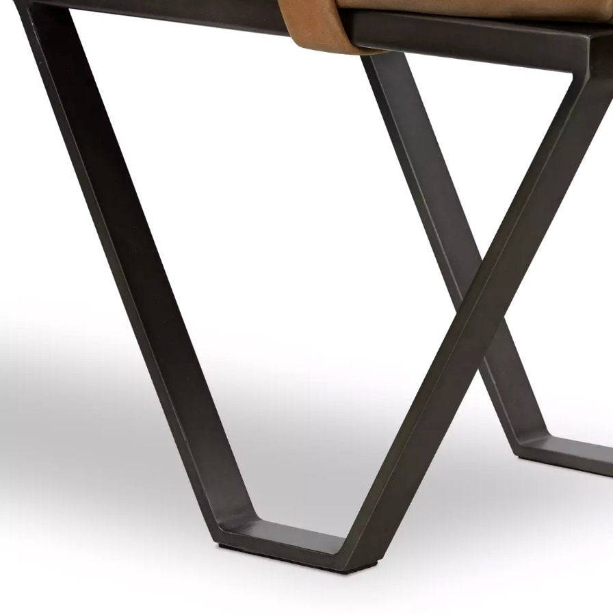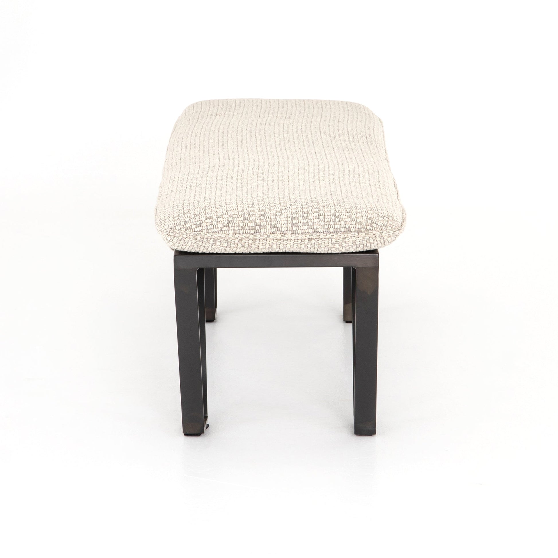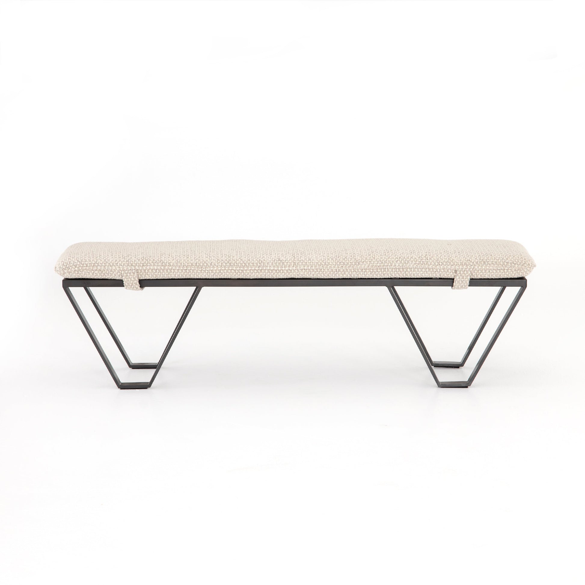 Le banc traditionnel, réinventé. Sa forme ingénieuse et son aspect vieilli, associés à une structure en fer finition canon de fusil, soutiennent un coussin sobre mais confortable, revêtu de cuir pleine fleur ou couleur avoine neutre.