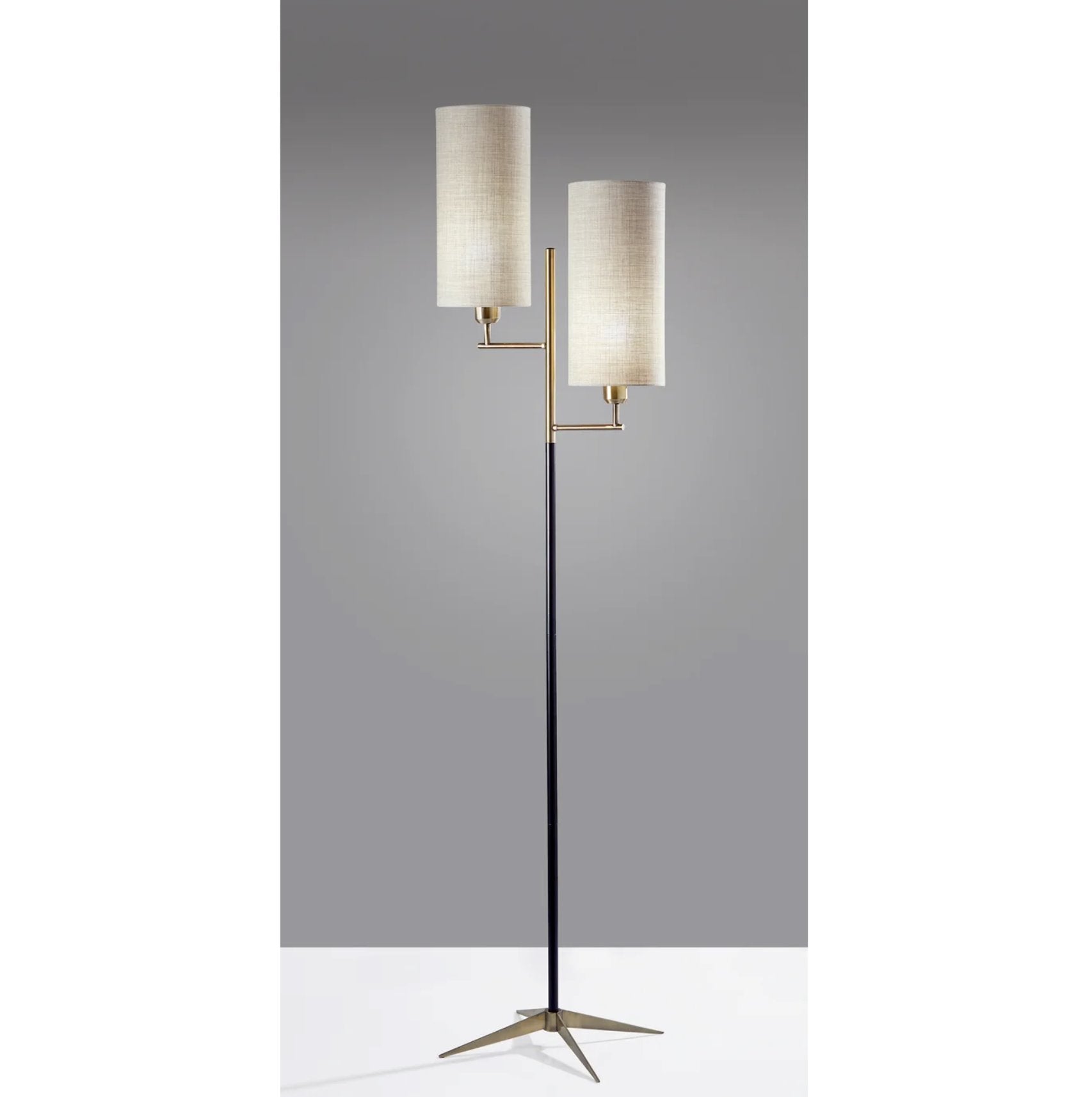 Conçu avec des éléments de design inspirés du milieu du siècle, le lampadaire Davis est idéal pour vos espaces de vie. Alliant finitions noir mat et laiton antique, ce lampadaire est doté d'un abat-jour cylindrique et haut en tissu texturé naturel qui apporte une touche de douceur. Chaque abat-jour est facilement contrôlable grâce à un interrupteur rotatif, tandis que le câble transparent discret s'intègre harmonieusement au pied pour une esthétique épurée.