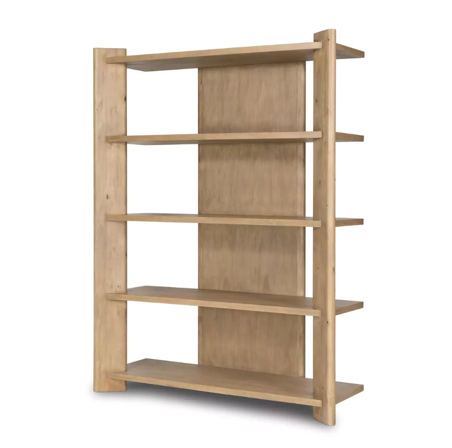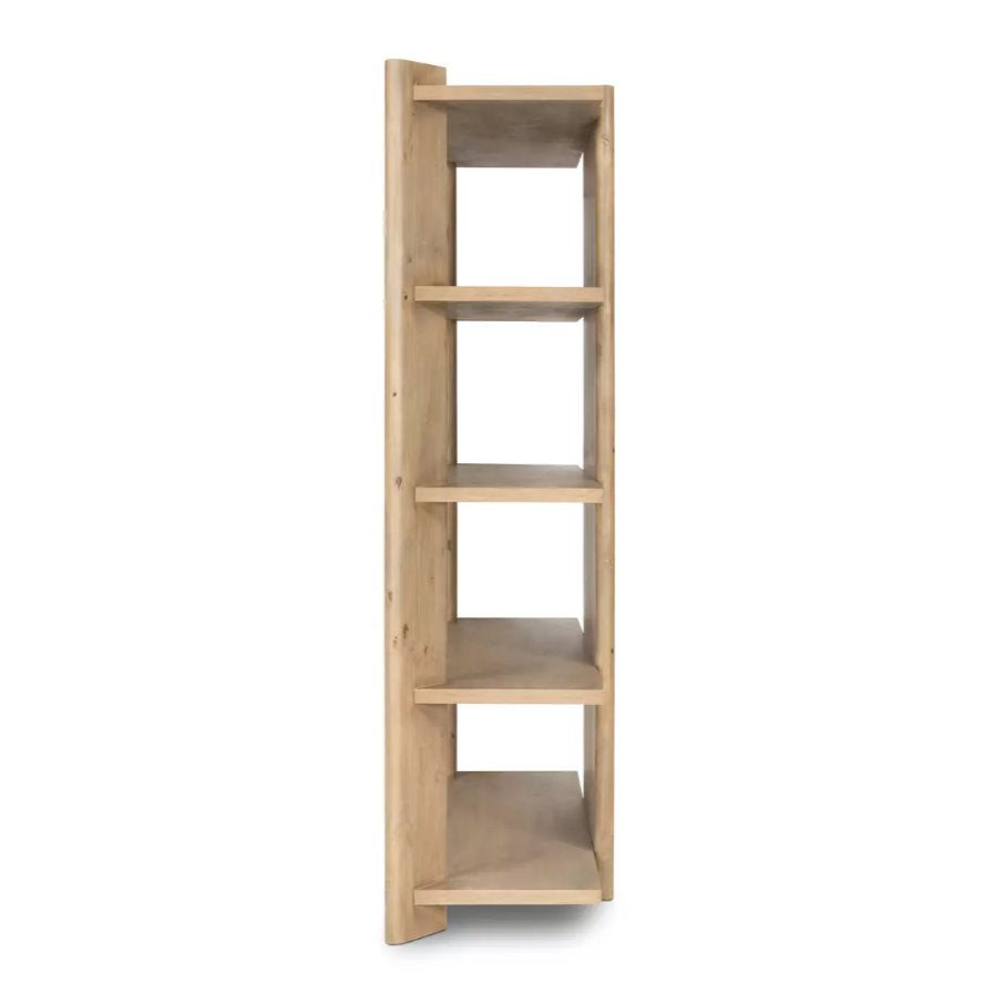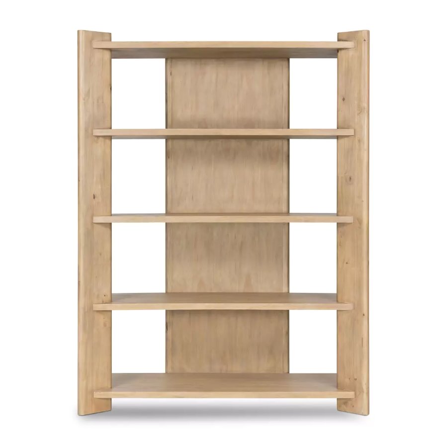 Fabriquée en pin robuste, la structure de cette bibliothèque présente des bords arrondis qui lui confèrent une douce allure. Ses étagères spacieuses offrent un grand espace de rangement, tandis que les supports avant inclinés ajoutent du relief au meuble.