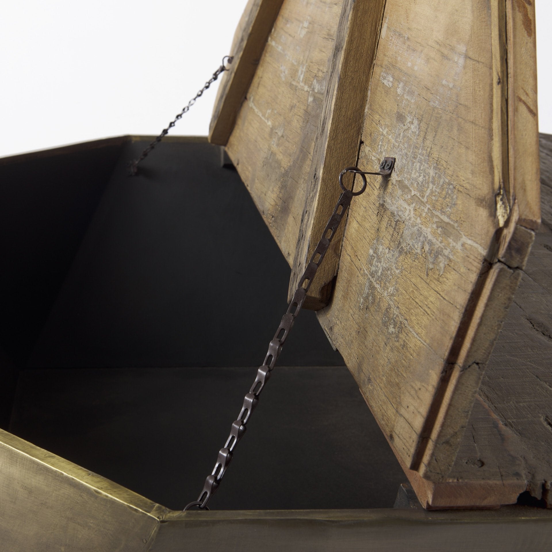 Avec son plateau rustique en bois dur recyclé et son piètement hexagonal en métal, la table basse Esagono est à la fois belle et robuste. Rangez-y tout ce dont vous avez besoin grâce à son espace de rangement dissimulé sous le plateau.