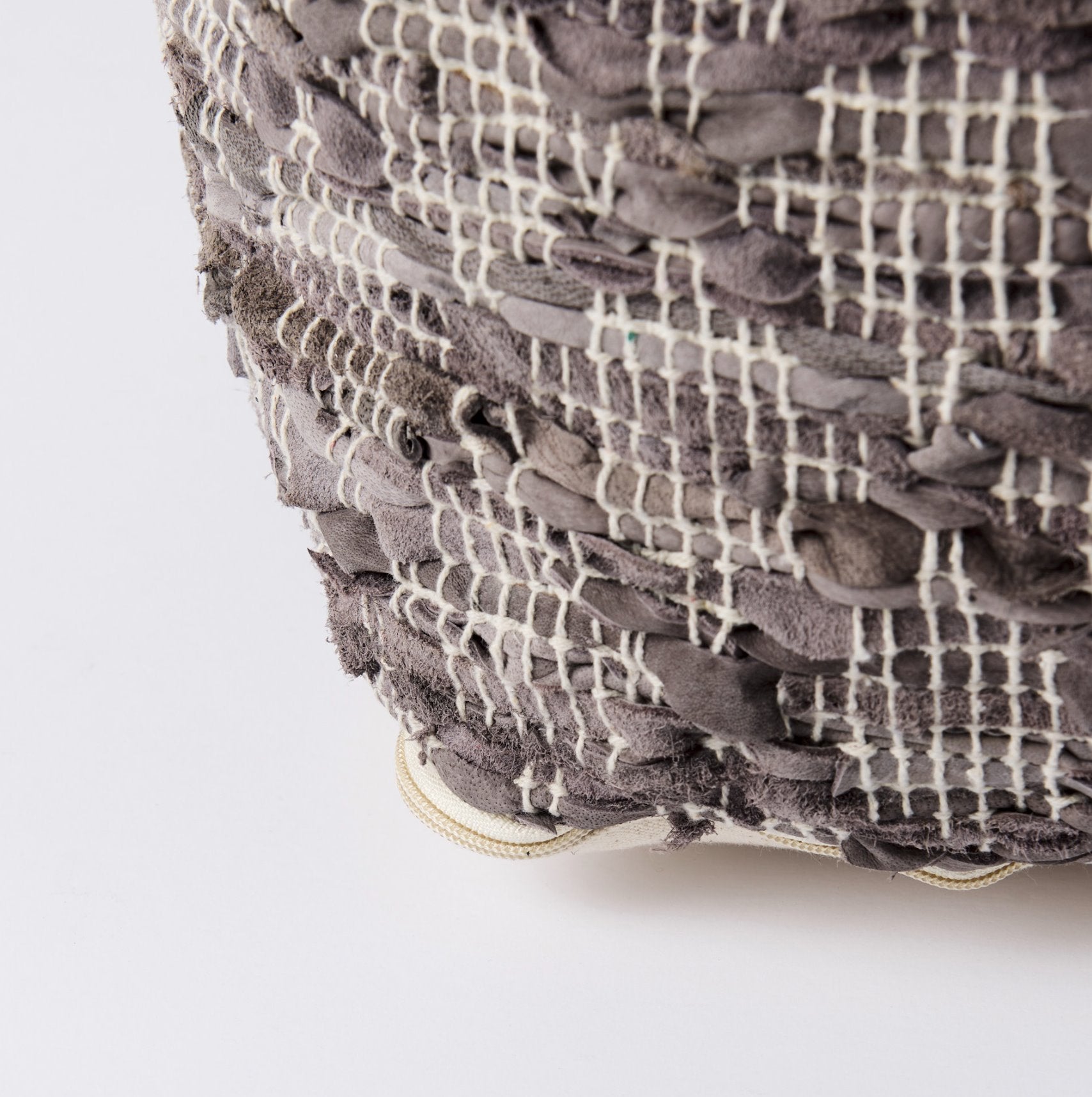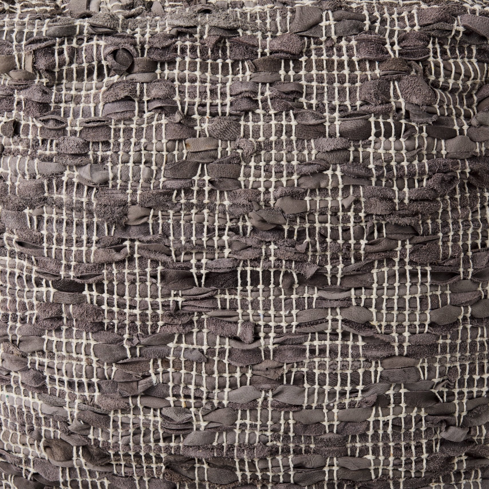 Le pouf Falguni est fabriqué avec un intérieur en cuir et un revêtement en coton pour plus de durabilité et de confort. Son élégant mélange de tons gris met en valeur un motif entrecroisé subtil et une texture douce, ce qui en fait un ajout élégant et confortable à toute pièce.