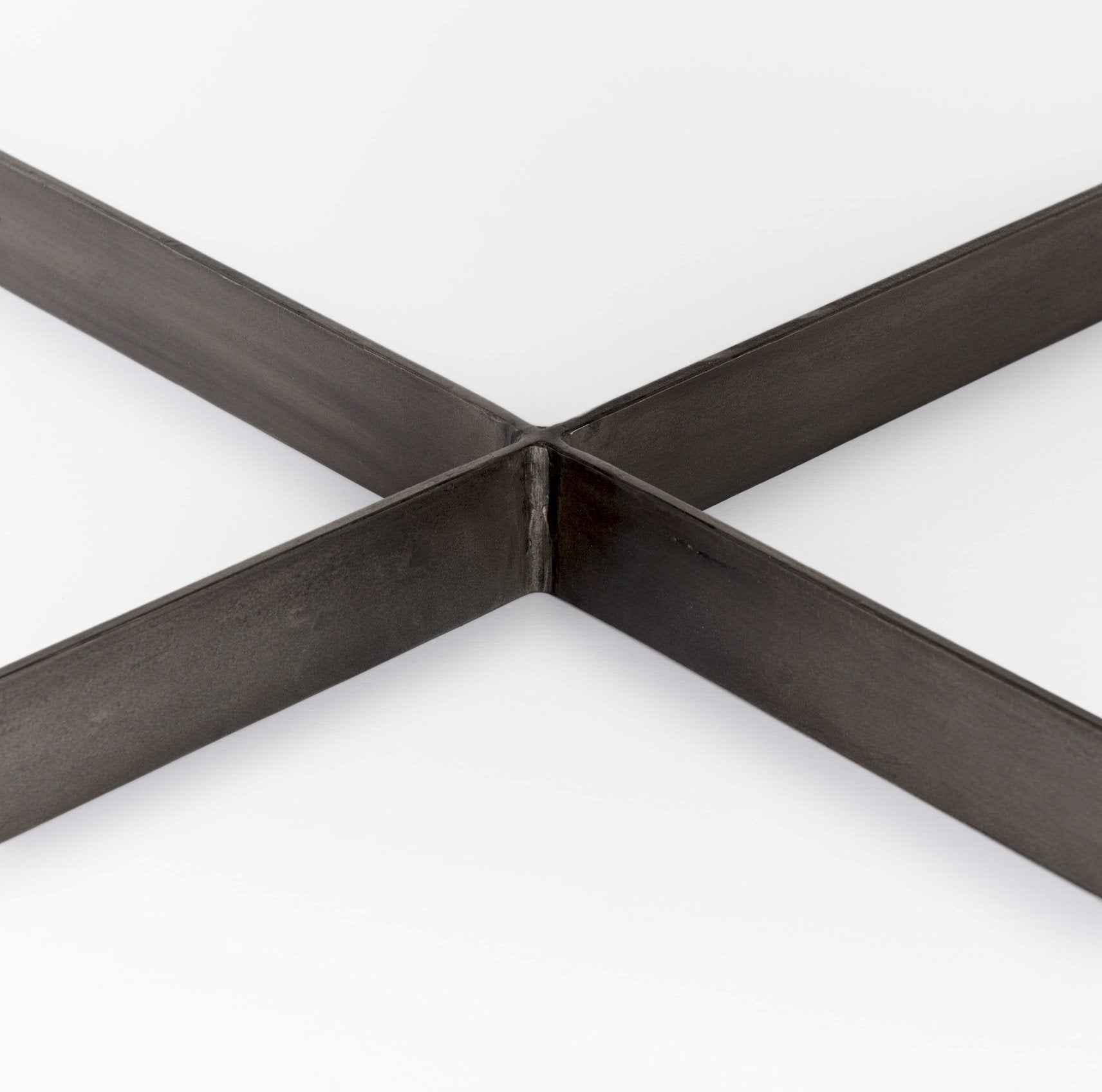 La table basse Faye présente un design raffiné et élégant, avec un piètement en fer entrecroisé disponible en finition dorée ou nickel antique. Son plateau carré est réalisé en bois de manguier durable, proposé en brun clair aux nuances grises ou en brun moyen, mettant ainsi en valeur la beauté naturelle du bois. Une alliance parfaite d'élégance et de simplicité moderne.