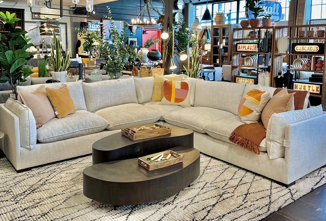 Le canapé d'angle Felix revisite le design classique avec des coussins luxueux et des lignes épurées. Agrémenté de coussins décoratifs aux couleurs et textures variées, son revêtement neutre offre une toile de fond idéale pour laisser libre cours à votre créativité.