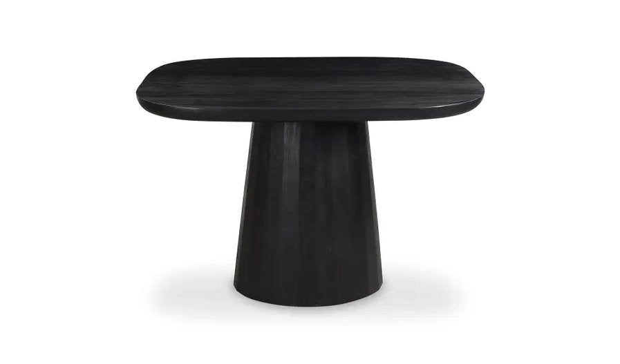 Magnifique exemple d'esthétique moderne, la table à manger Freed est idéale pour recevoir en petit comité. Fabriquée en bois d'acacia massif, sa silhouette audacieuse se compose d'un large pied central en forme de tambour et d'un plateau aux bords légèrement biseautés.
