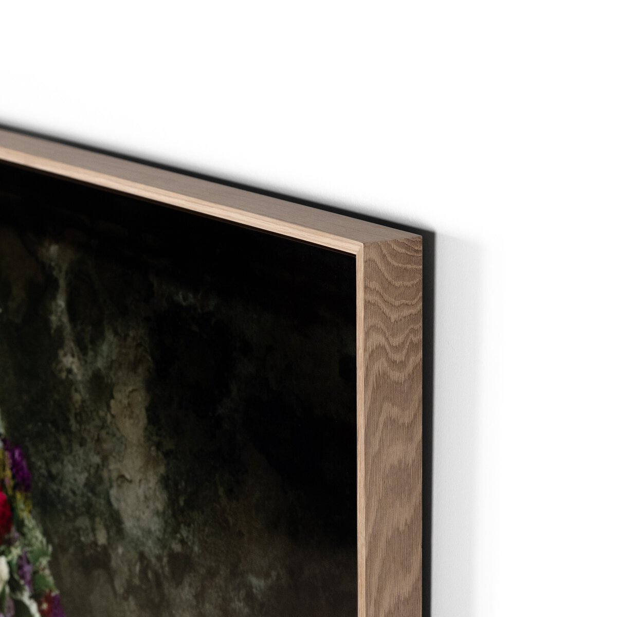 Une magnifique photographie du « Roi » lors de la Fête des Guirlandes à Castleton, une tradition celtique remontant au XVIIIe siècle, réalisée par le photographe londonien Dan Kitwood. Tirage haute définition sur métal ChromaLuxe par sublimation thermique, monté sur un cadre flottant en chêne américain blanc à grain vertical pour un rendu moderne et digne d'un musée. Image reproduite avec l'aimable autorisation de Getty Images.