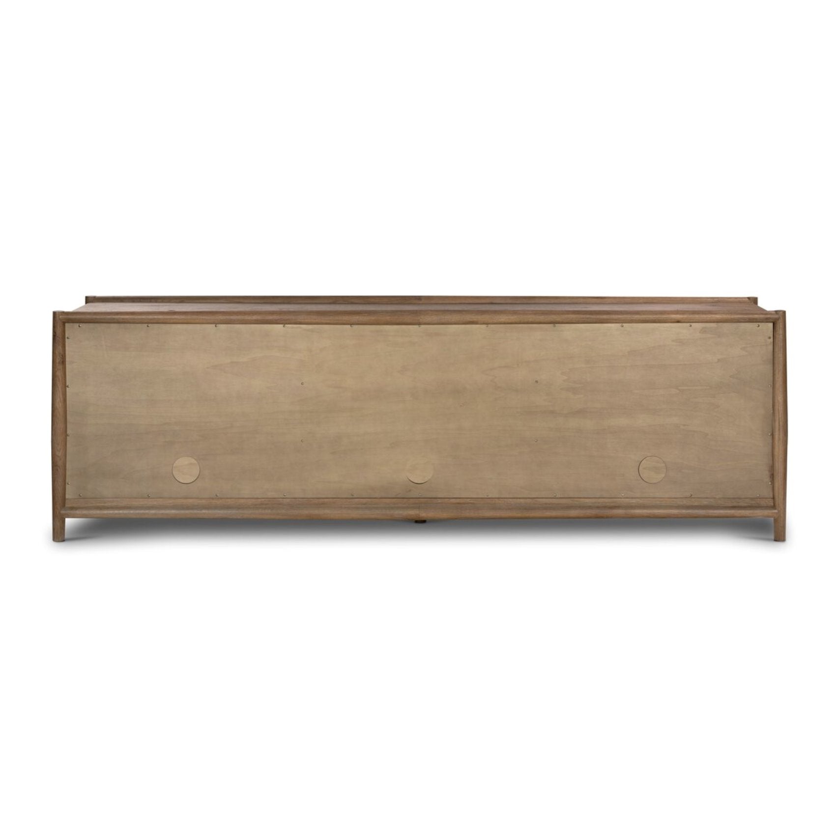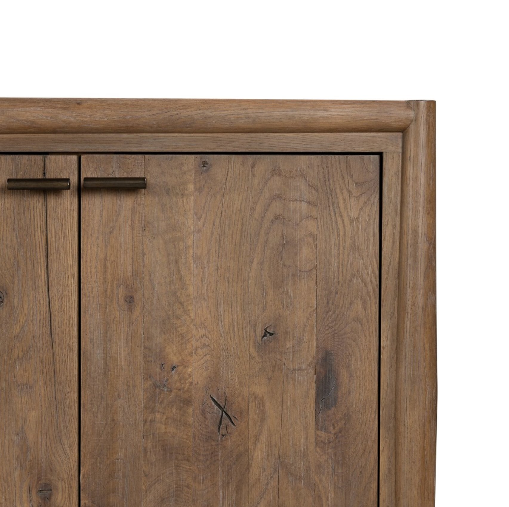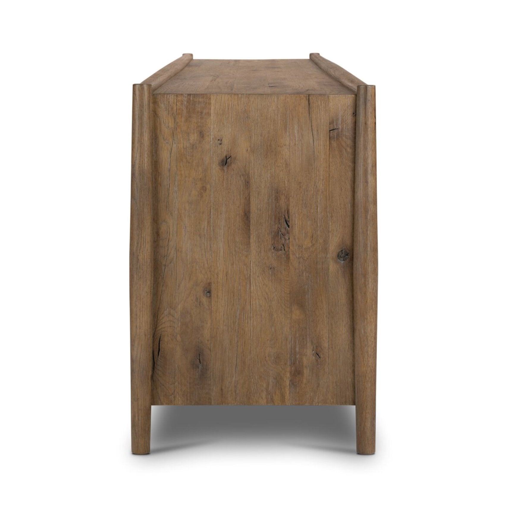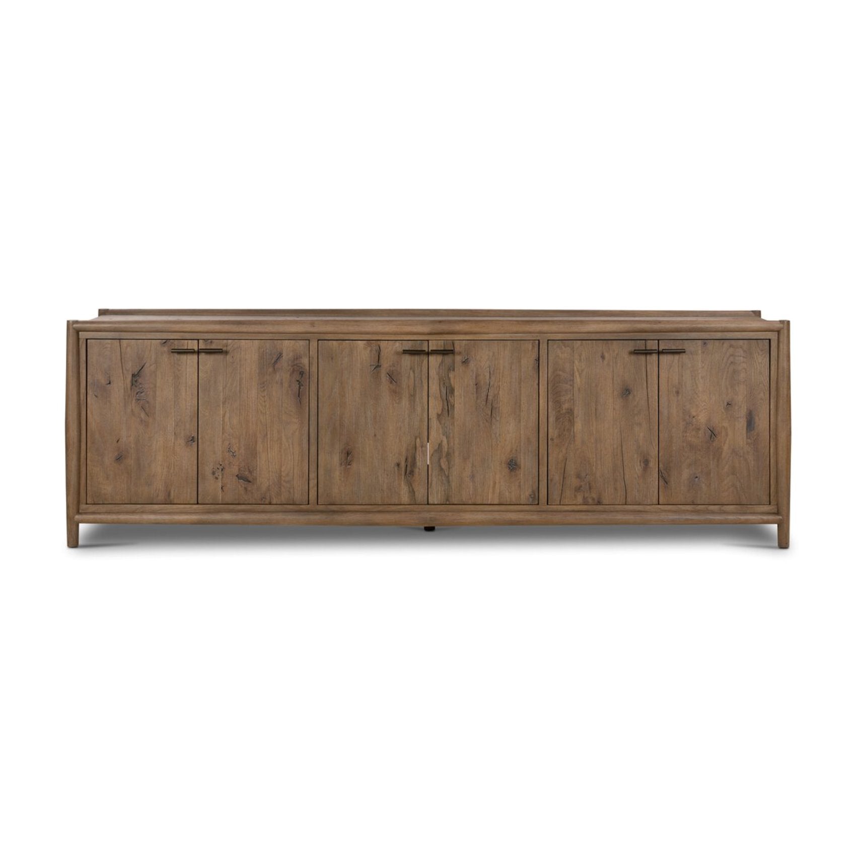 Le buffet Glenview à six portes offre un espace de rangement généreux pour toute salle à manger, salon ou entrée. Fabriqué en chêne vieilli et orné de ferrures cylindriques en bronze vieilli, il allie fonctionnalité et élégance.