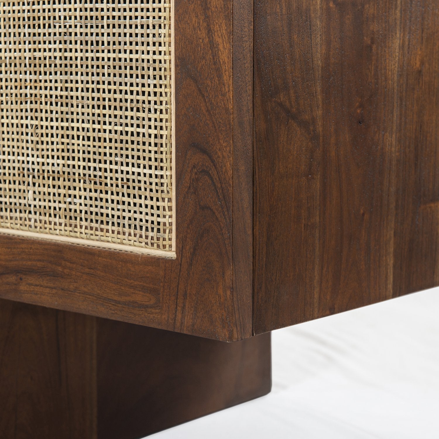Le bureau Goldie arbore un design contemporain inspiré du style moderne du milieu du siècle. Élégant et robuste, il est fabriqué en bois d'acacia massif avec de magnifiques portes en rotin naturel et propose même une fausse clé de verrouillage amovible, une interprétation originale de la quincaillerie traditionnelle.