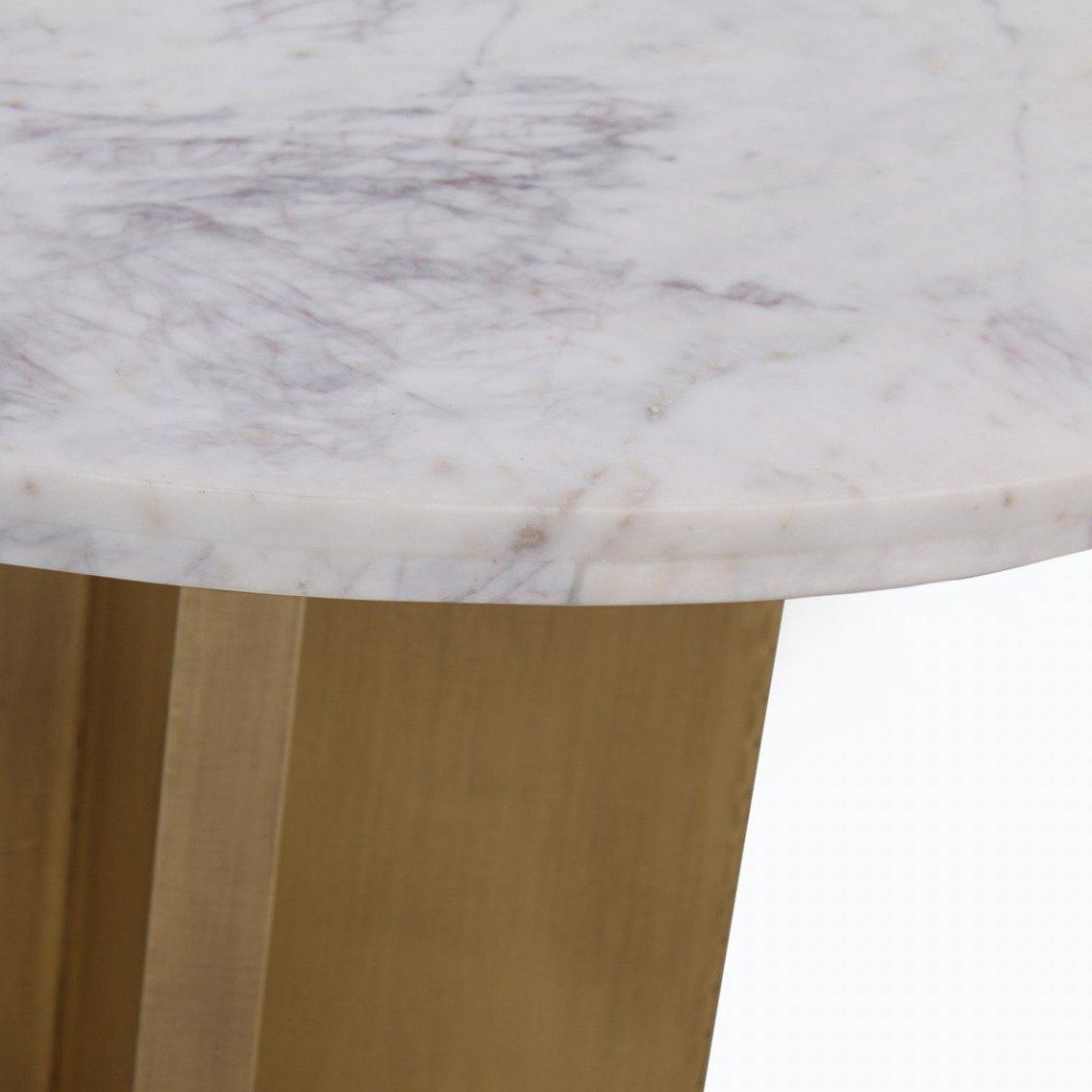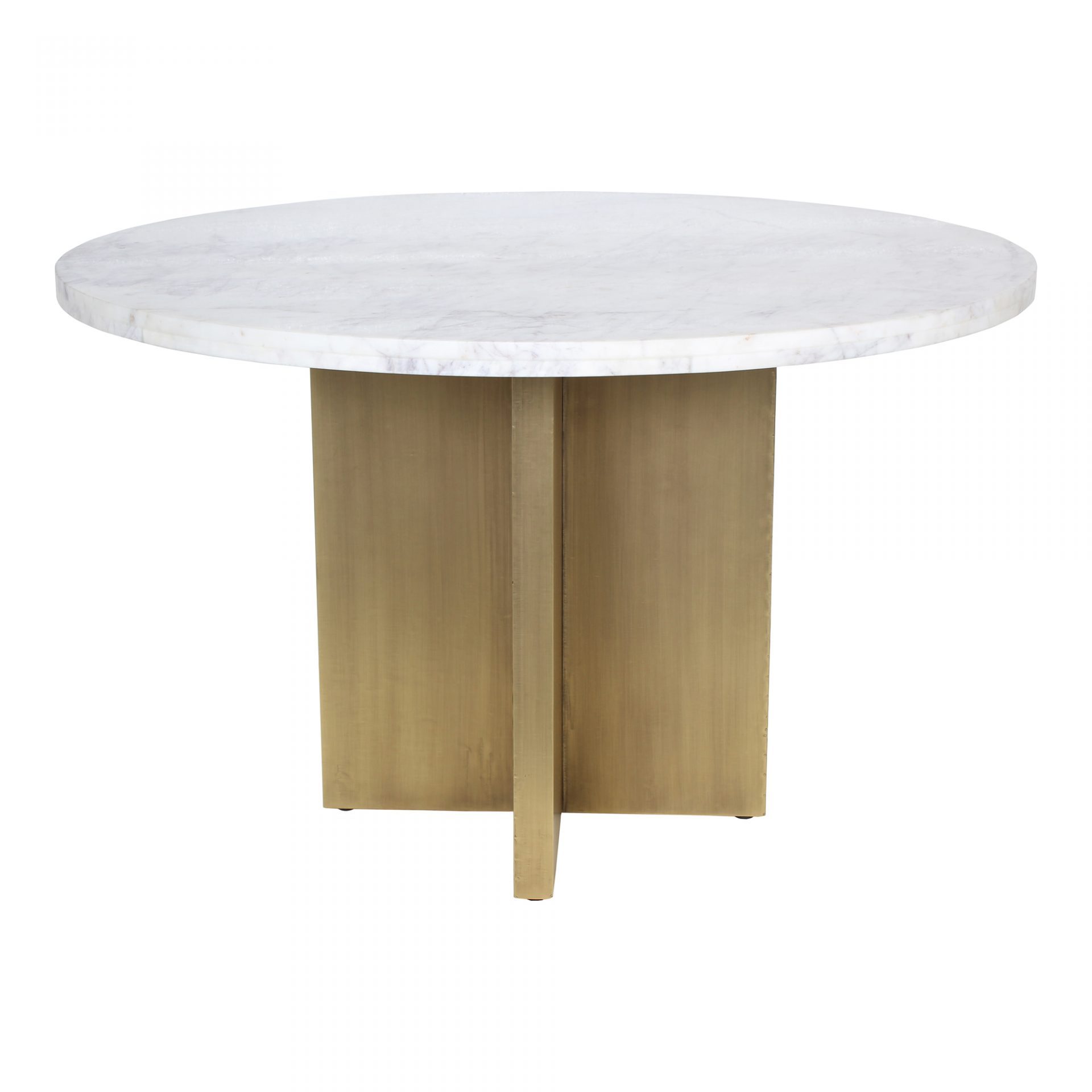 Sublimez votre salle à manger avec la table Graze. Spacieuse et ronde, elle peut accueillir jusqu'à 6 personnes et est idéale pour optimiser les petits espaces. La table Graze se distingue par son magnifique plateau en marbre et son piètement en fer finition laiton.