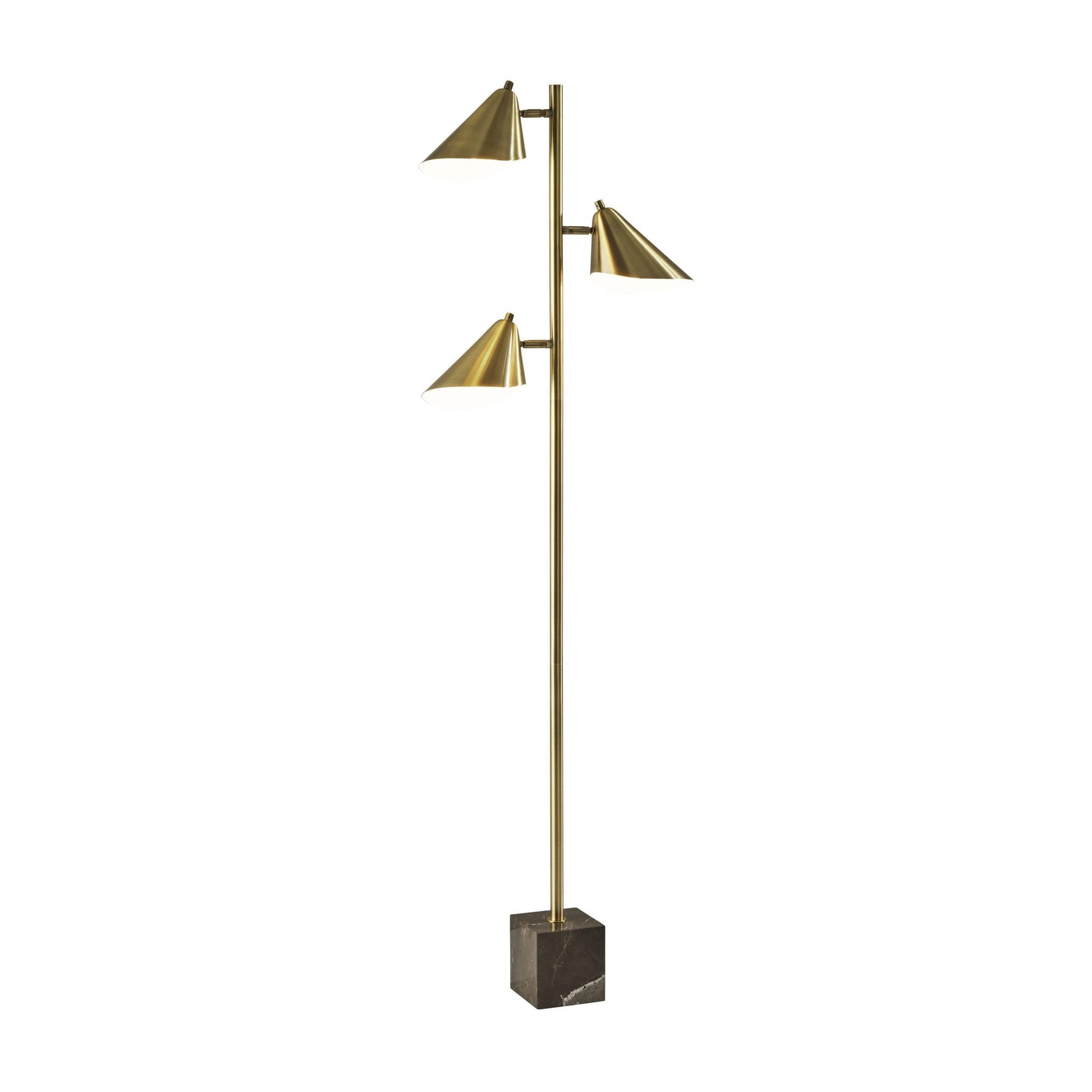 Apportez une touche de modernité du milieu du siècle à votre intérieur avec le lampadaire Hawthorne. Doté d'un socle cubique en marbre brun reposant sur un piédestal en laiton vieilli et de trois abat-jour décalés, ce lampadaire allie élégance et raffinement. Avec une hauteur de 173 cm et une profondeur de seulement 20 cm, il est suffisamment compact pour s'intégrer dans n'importe quelle pièce. Chaque abat-jour conique incurvé est articulé, vous permettant ainsi d'orienter la lumière selon vos besoins. Un interrupteur rotatif situé sur chaque abat-jour permet d'allumer et d'éteindre facilement les ampoules de 40 W (non fournies) . Ce lampadaire est également équipé d'un câble transparent de 1,5 m.