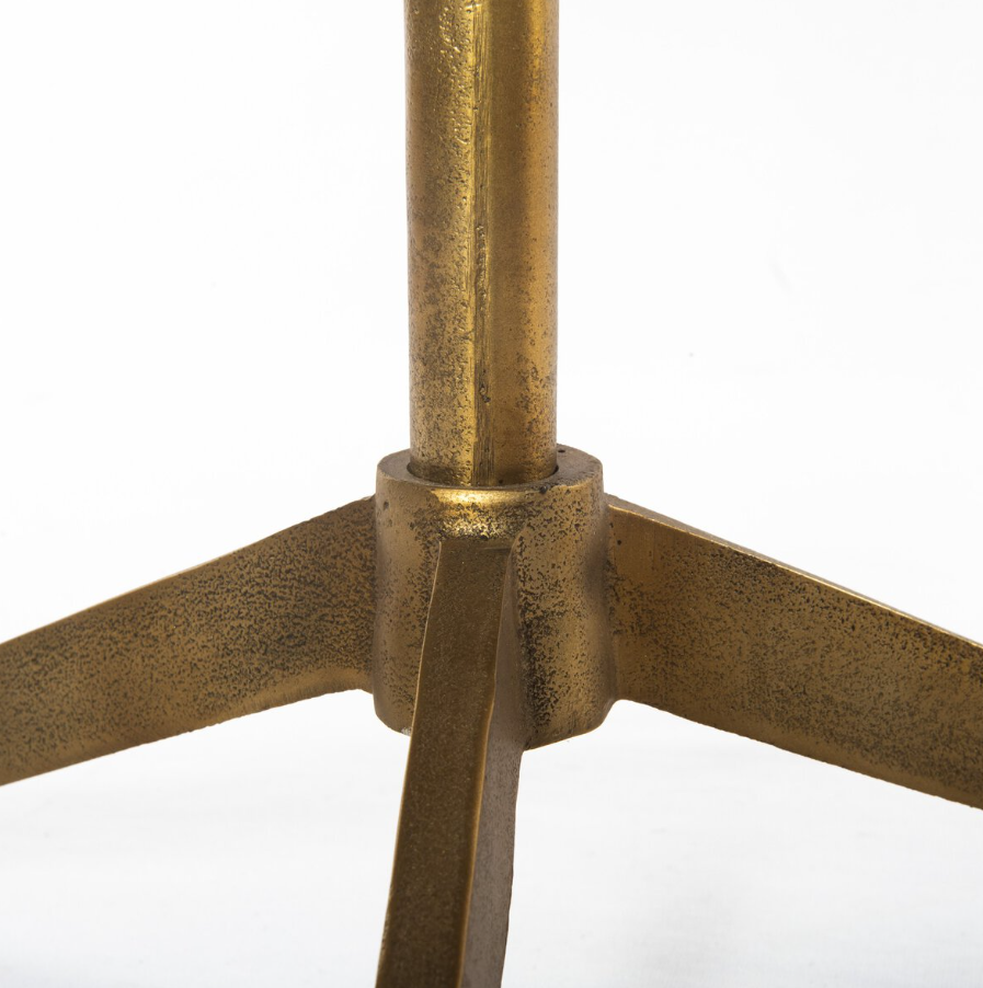 La table d'appoint Helen présente un design élégant avec son piétement tripode en laiton brut et son plateau rond blanc poli. Cette table d'appoint raffinée est idéale pour poser un verre ou un livre à portée de main.