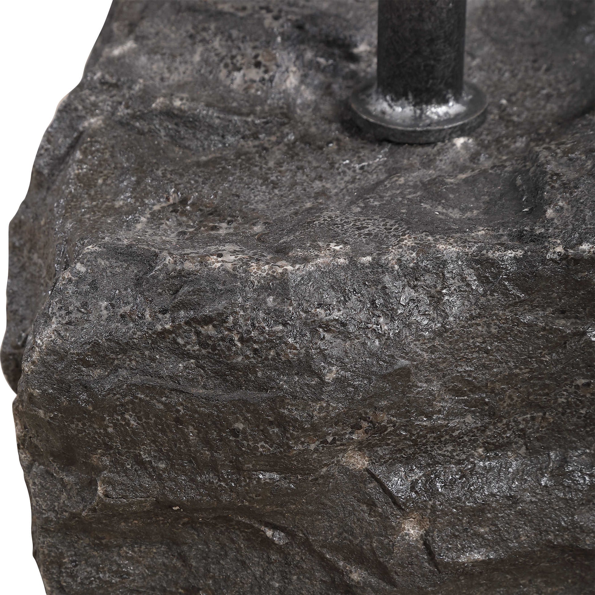 Apportez une touche industrielle et authentique à votre intérieur avec cette superbe table d'appoint. Son plateau en orme recyclé arbore un magnifique motif en étoile. Le piètement, un bloc de pierre bleue naturelle taillée, repose sur une tige en fer vieilli : un style résolument moderne.