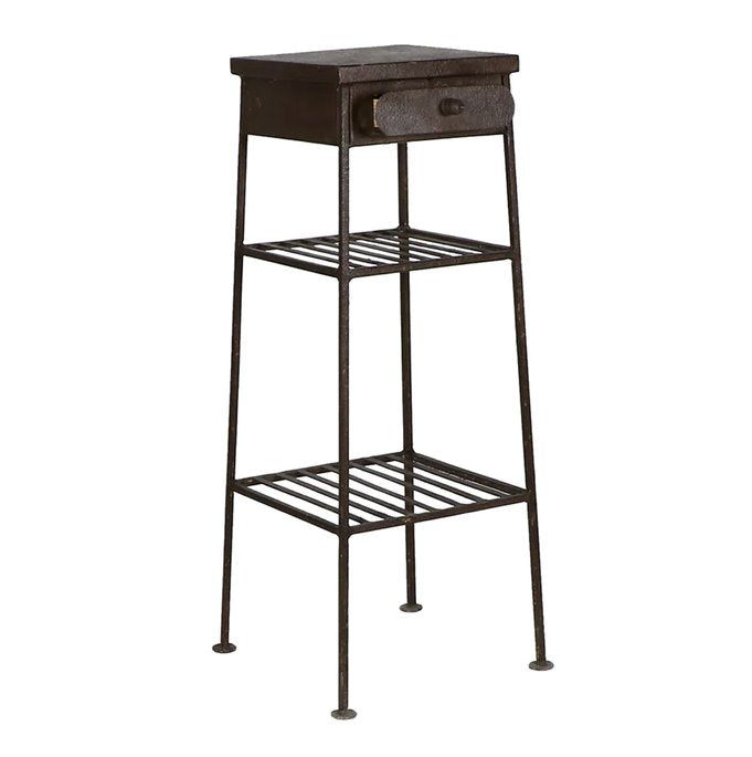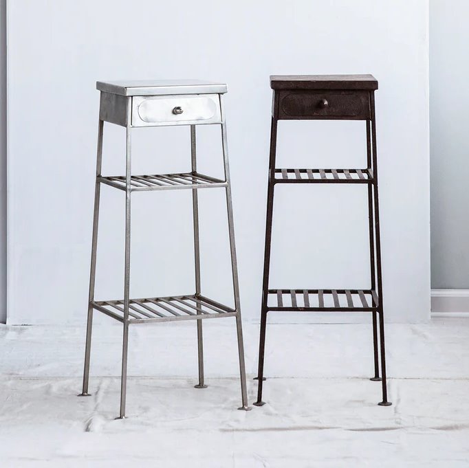 Apportez une touche vintage à votre intérieur tout en conservant un design industriel contemporain grâce à ce meuble de dentiste en fer. Idéal comme accessoire de table, il est doté de deux étagères ouvertes à claire-voie et d'un tiroir de rangement.
