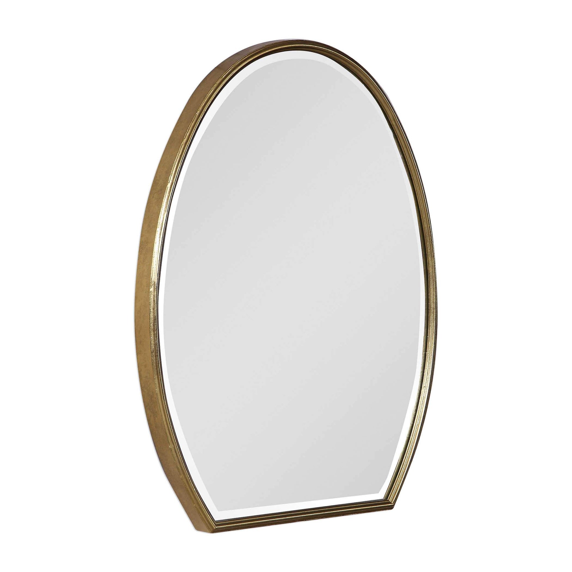 Le miroir Kenzo, avec son élégant cadre en fer incurvé et son socle plat, est idéal à poser sur une table ou à accrocher au mur. Chaque miroir est orné de feuilles d'or appliquées à la main sur le cadre, lui conférant un aspect vieilli.