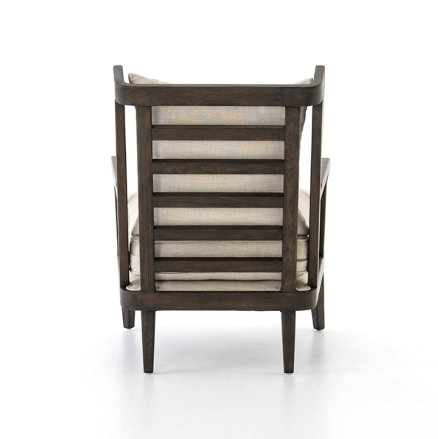 Une structure robuste en chêne chaleureux, associée à un haut dossier à barreaux, lui confère une allure majestueuse. Revêtu d'un rembourrage moelleux aux tons brumeux et d'un tissu performant ivoire, ce canapé allie style et confort absolus.