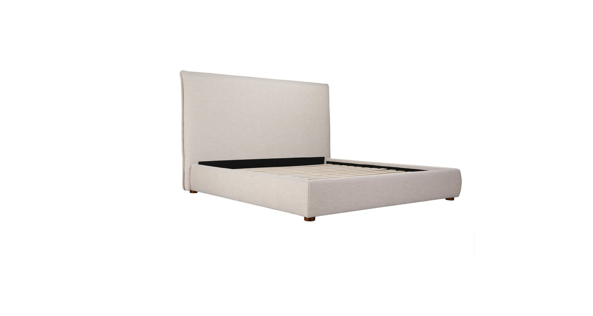 Le lit Luzon King est doté d'une haute tête de lit rembourrée de mousse et d'un cadre en pin massif, garantissant confort et robustesse. De plus, sa teinte neutre et son revêtement en lin doux créent une ambiance accueillante et apaisante.