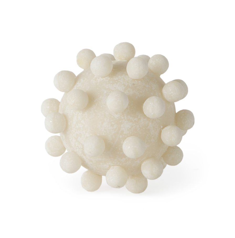 Fabriqué en résine dans une belle finition crème clair, l'objet décoratif Malo est moulé en forme de sphère avec des boutons texturés sur tout le pourtour. Il apporte une touche d'originalité à tout espace.