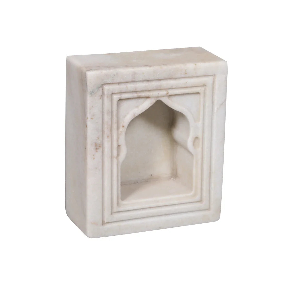 Cet élégant bougeoir, confectionné en marbre blanc, présente des détails de conception complexes et constitue un élément raffiné de la décoration de votre maison.