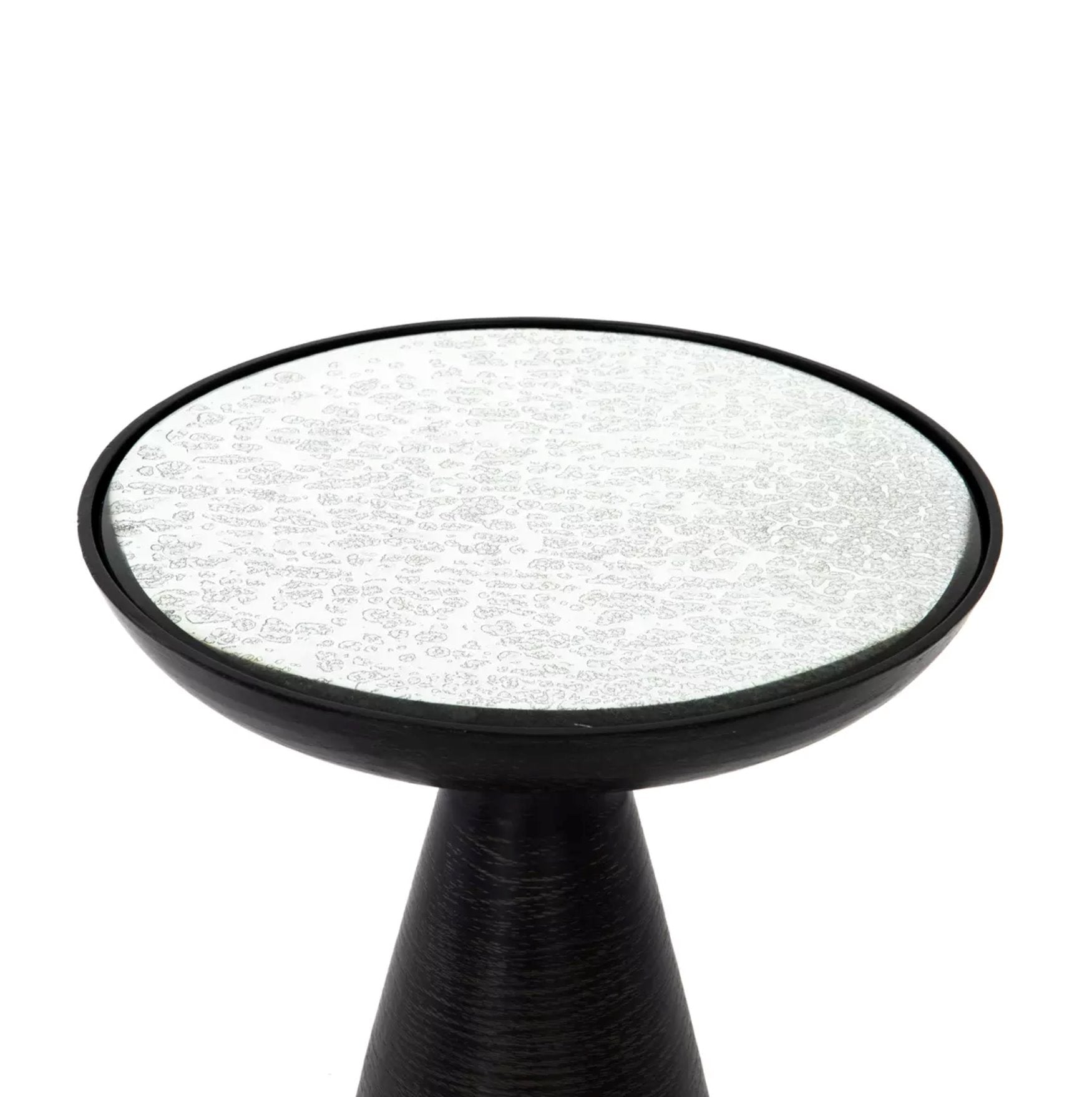 Cette table sur pied Marlow Mod présente une finition en bronze brossé et un plateau en verre frêne miroir qui allie le charme vintage à une esthétique métallique moderne.