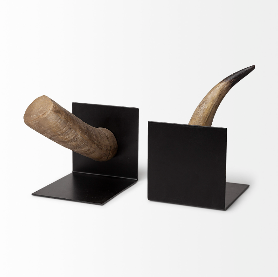 Fixés sur des socles métalliques robustes, ces serre-livres en forme de corne de taureau sont non seulement attrayants, mais ils maintiennent également vos livres en place et ajoutent une touche sculpturale unique à votre espace.