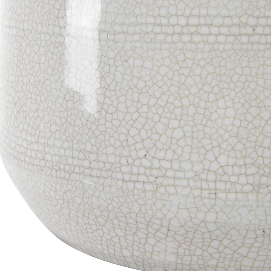 La lampe de table Odawa allie le charme rustique d'une ferme à une superbe glaçure craquelée blanc cassé et à d'élégants détails en nickel brossé. Son abat-jour rond conique, recouvert de lin gris clair, apporte une touche d'élégance à l'ensemble.