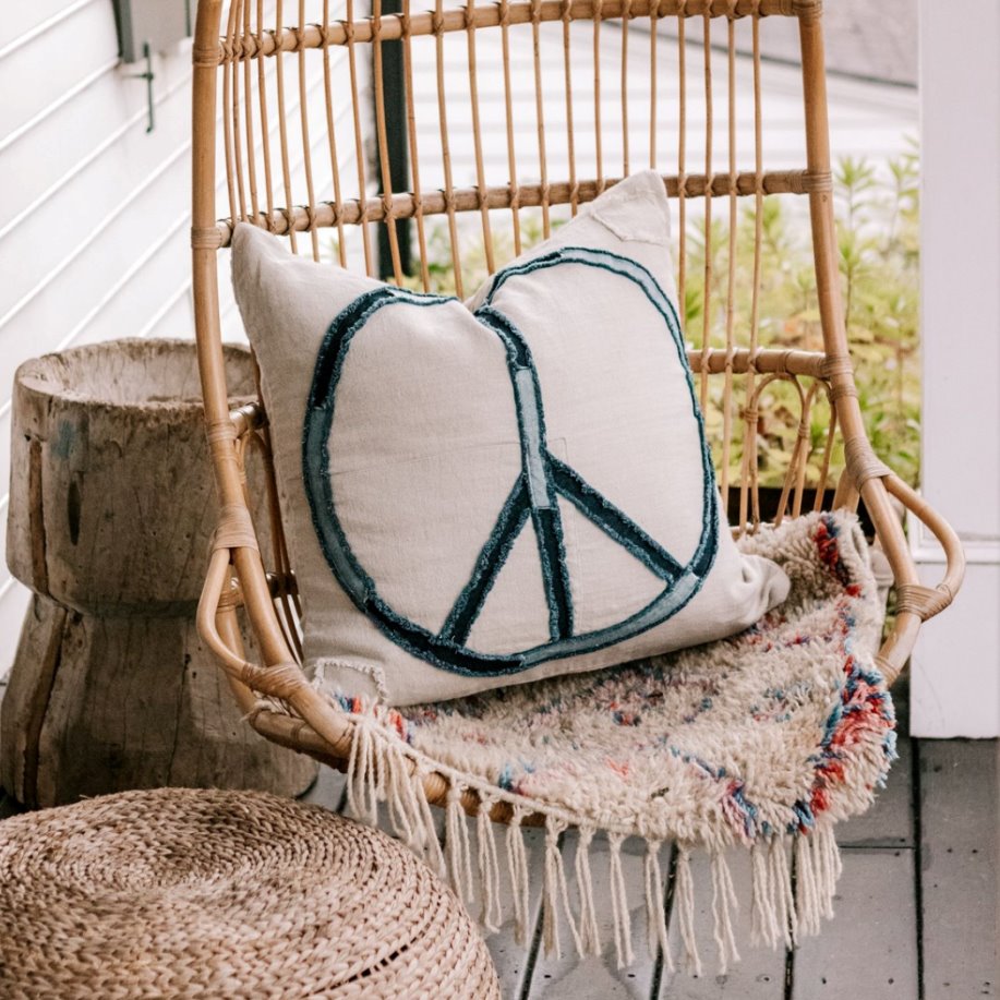 Le coussin Peace Stitched présente des finitions artisanales, comme des bords en tissu effet denim, pour un style unique. Ce coussin décoratif est idéal pour apporter une touche bohème à n'importe quelle pièce.