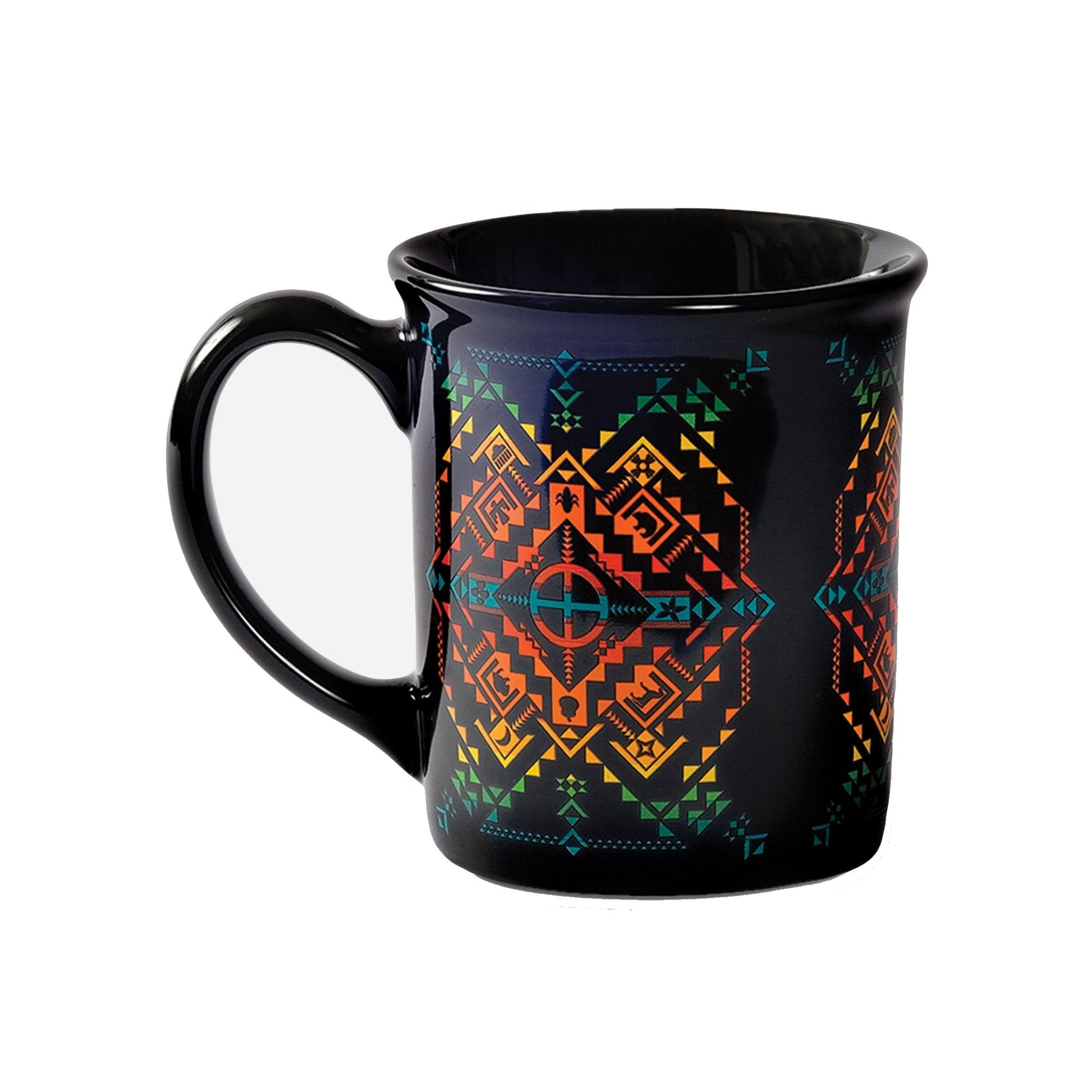 Pendleton Woolen Mills, entreprise familiale basée en Oregon, perpétue un riche patrimoine et puise ses racines dans l'Ouest américain. Plutôt que de simplement imiter l'esthétique des tribus amérindiennes, Pendleton a tissé des liens étroits avec les peuples autochtones. Il en résulte une authenticité et une sensibilité particulières dans les motifs, comme ceux de ces tasses, dont chacune raconte une histoire unique. Assez grandes pour contenir du café ou de la soupe, ces tasses sont de magnifiques cadeaux.
