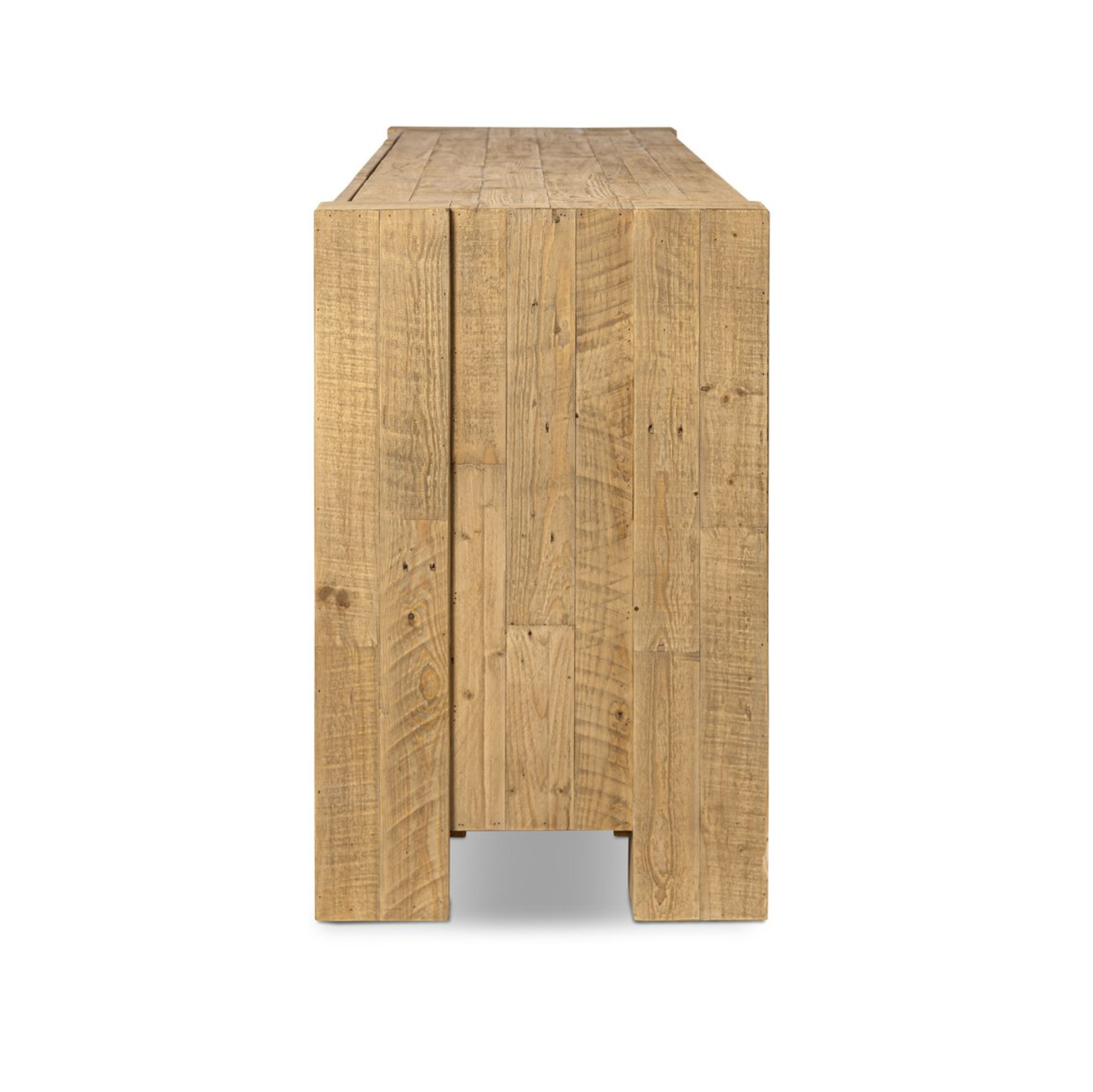 Fabriqué en pin clair, le buffet Perot offre un grand espace de rangement grâce à ses étagères intérieures spacieuses. Son design neutre lui confère une grande polyvalence et le rend adapté à différents espaces.
