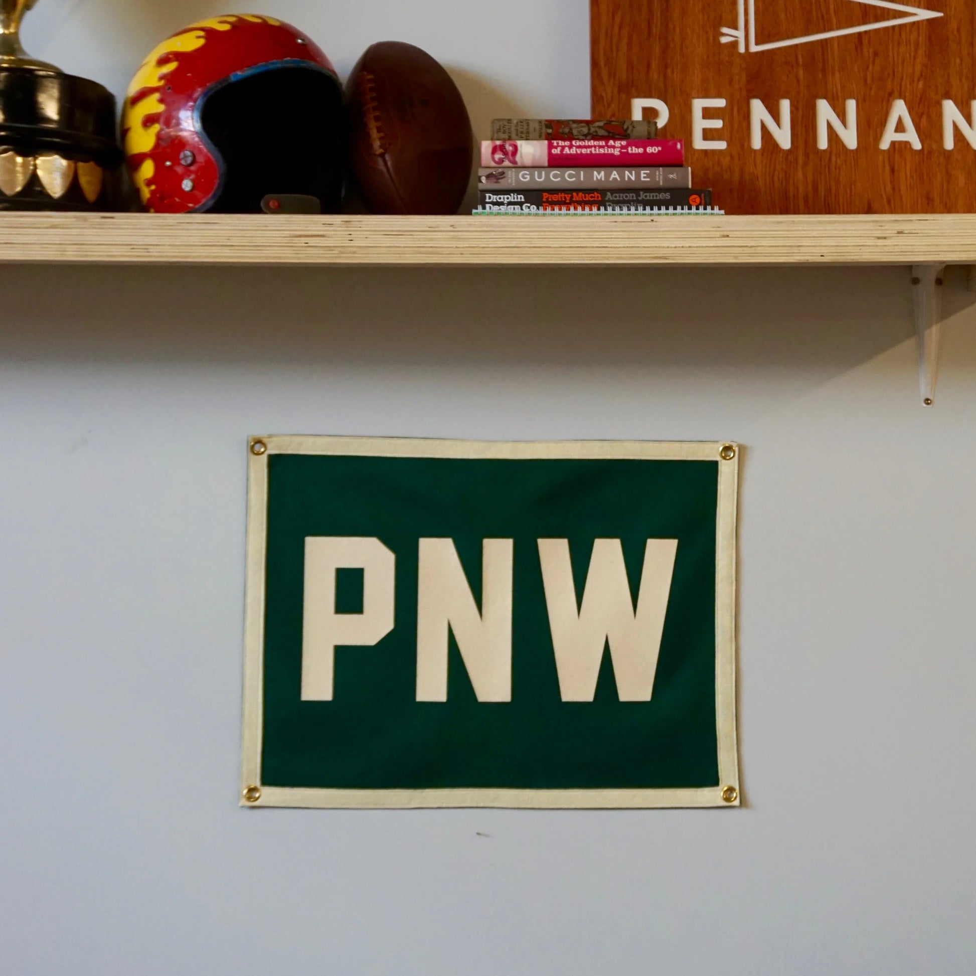 Affichez fièrement les couleurs du Nord-Ouest Pacifique avec ce drapeau de camp. Confectionné en feutre de laine de haute qualité.