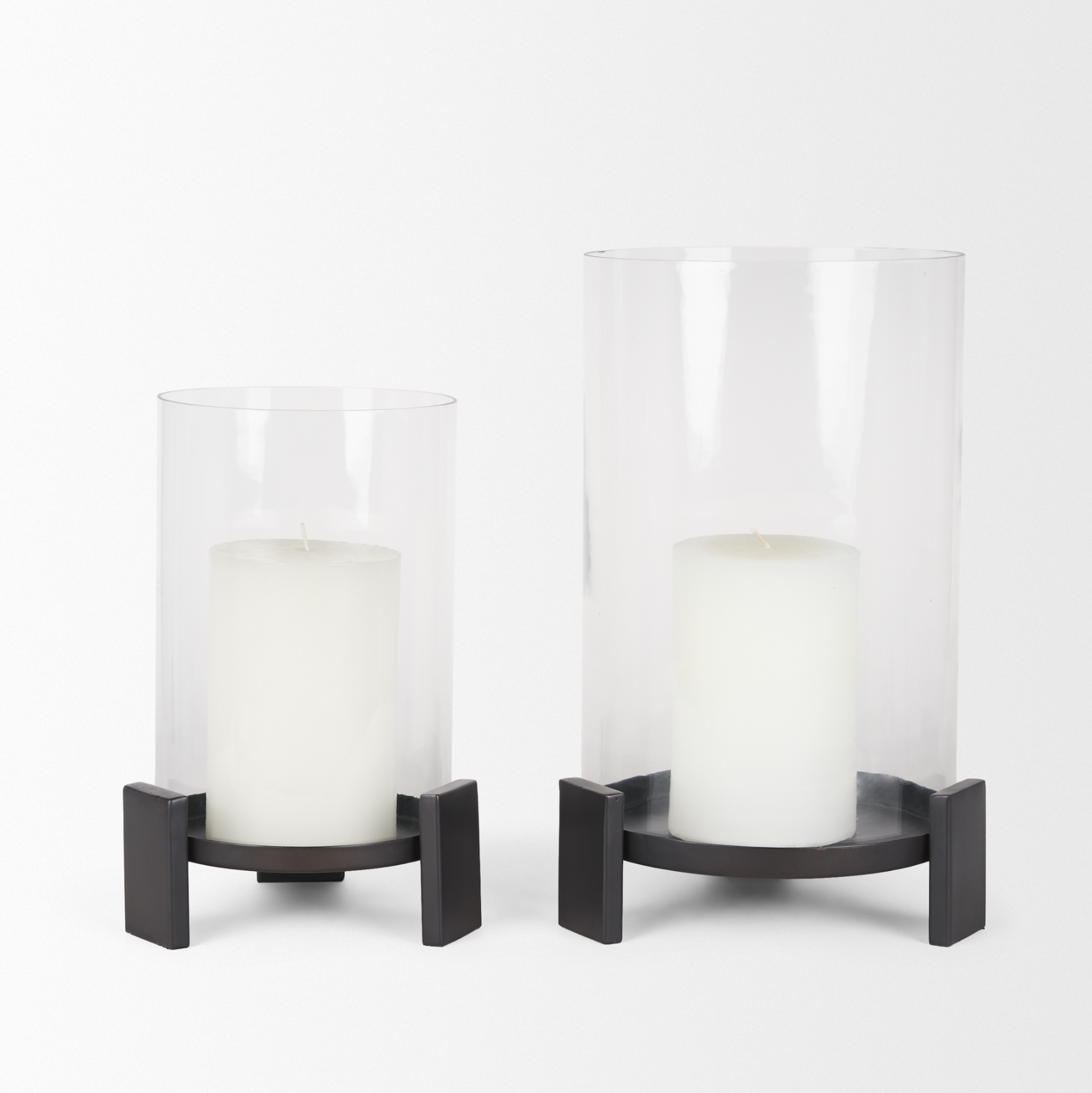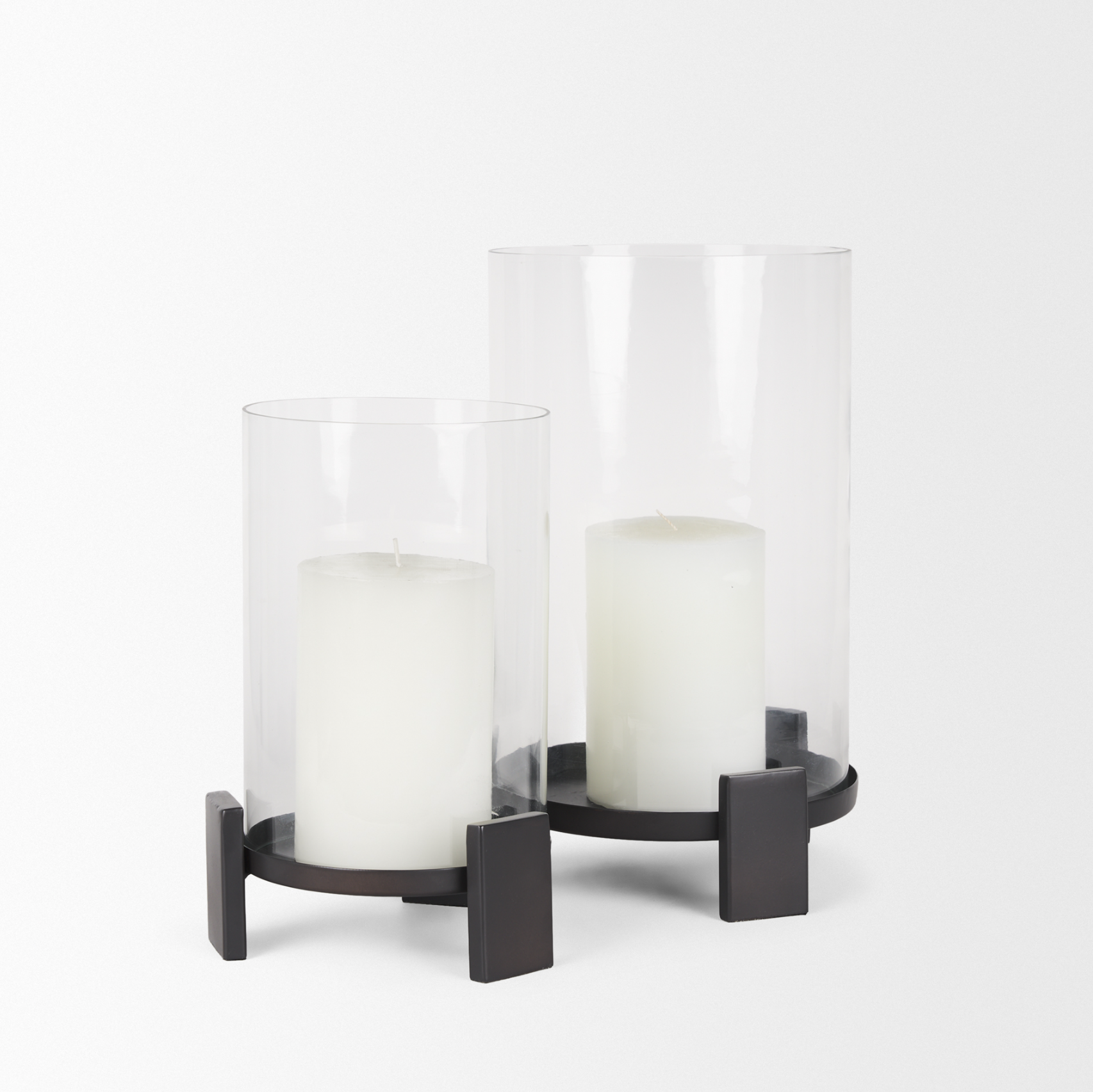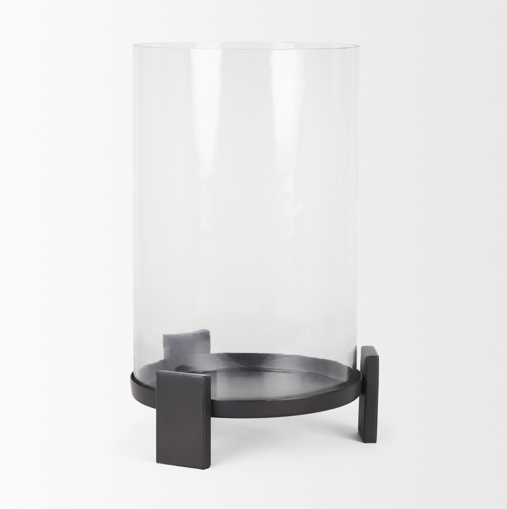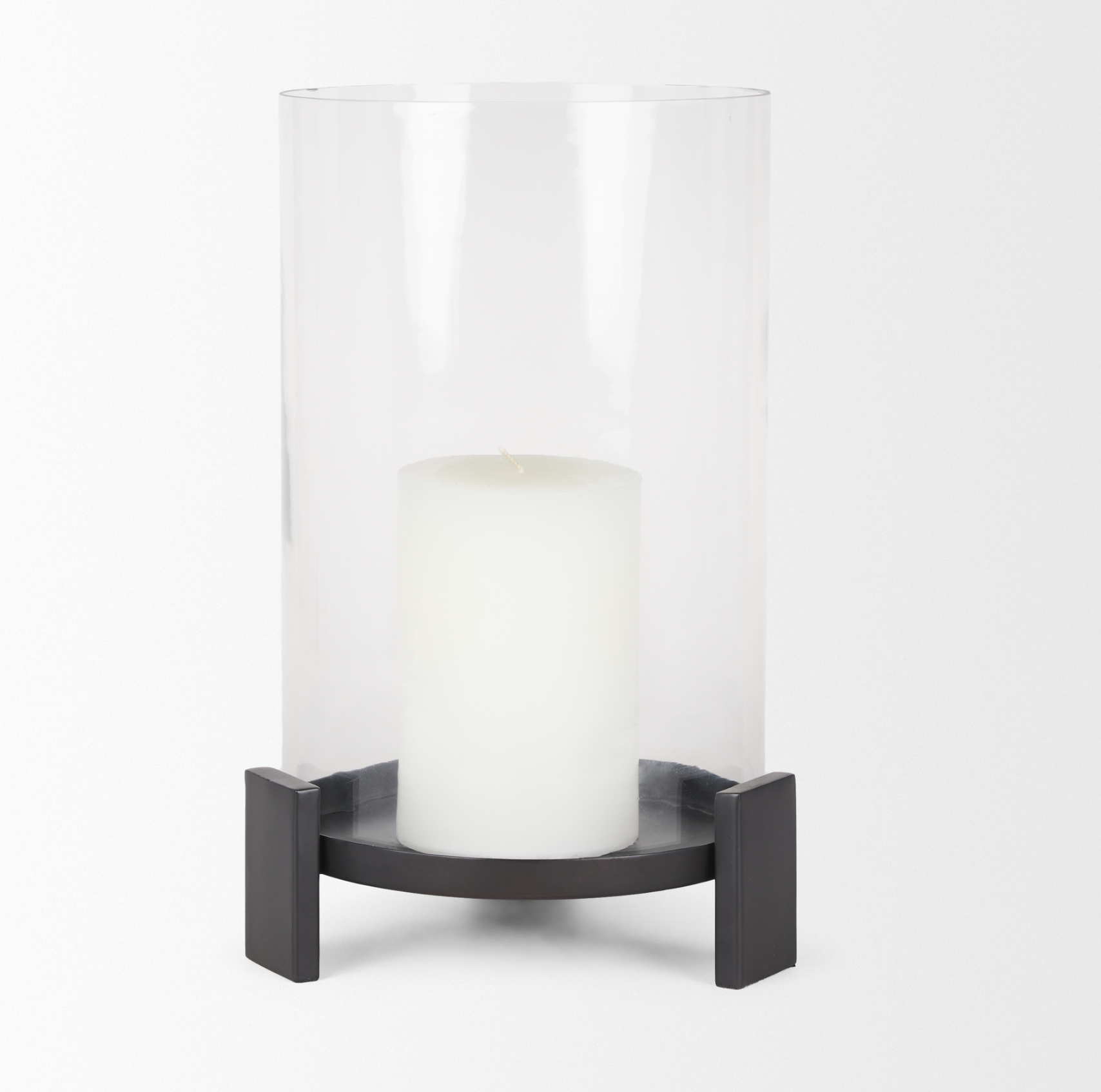 Le bougeoir Price possède une base circulaire en aluminium moulé à la finition noire mate texturée, reposant sur trois pieds rectangulaires élancés. Conçu pour accueillir une bougie pilier, il est protégé par un photophore cylindrique en verre transparent. Cette pièce raffinée et élégante apportera une touche d'élégance à votre intérieur.